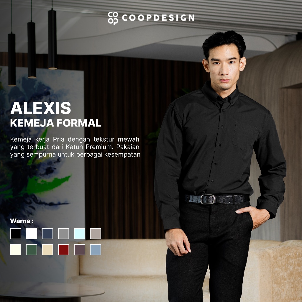 [BEST SELLER] Coop Design - Alexis Kemeja Kerja Office Formal Basic Polos Pria Lengan Panjang