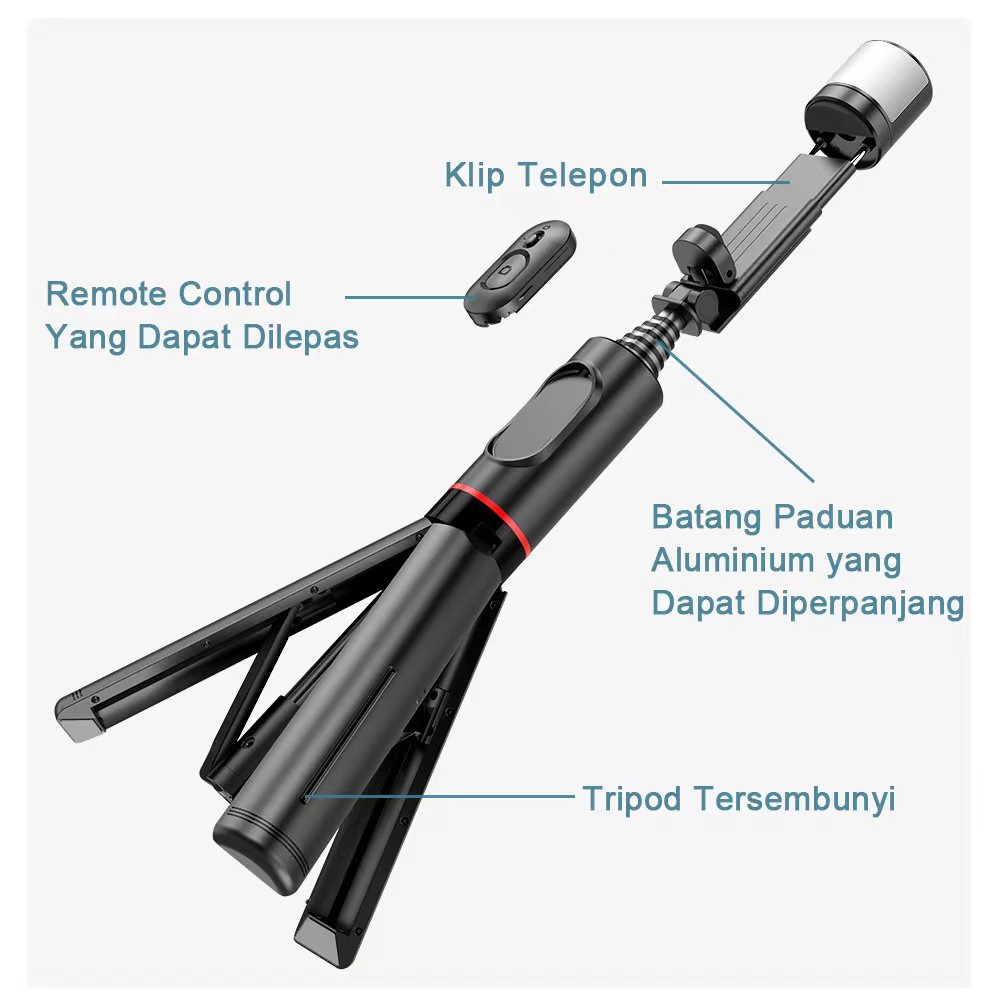 MINI TRIPOD HP TONGSIS TRIPOD BLUETOOTH TRIPOD DENGAN LAMPU BLUETOOTH REMOTE 765MM TONGSIS HP SELFIE STICK HP HOLDER