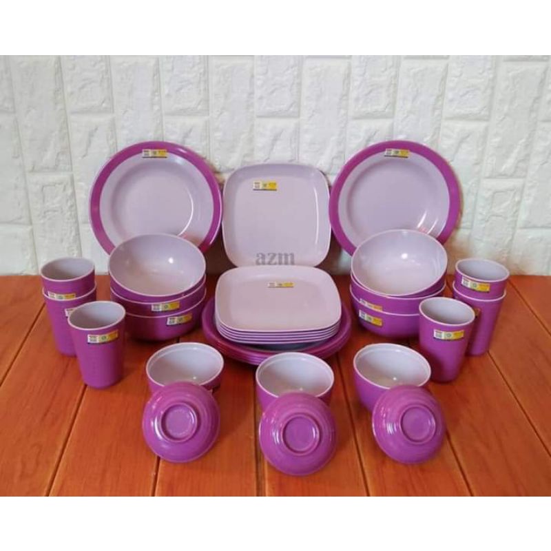 Piring Makan melamin set 30pcs en dragon/Piring dua warna