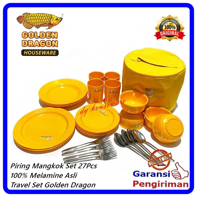 Piring Mangkok Set Melamine 27Pcs Piring Makan Gelas Minum Mangkok Melamin Travel Set en Dragon