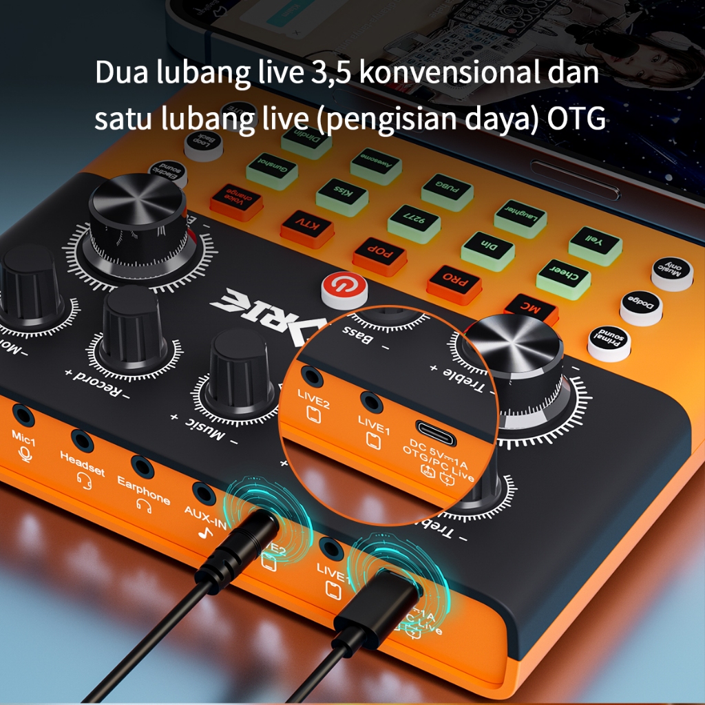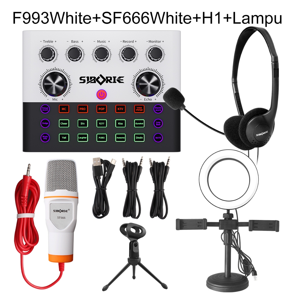 Siborie F993 Soundcard +Sf666 Mic + H1 Headphone + Lampu Paket Lengkap Live Soundcard Bluetooth Streaming Langsung Siap