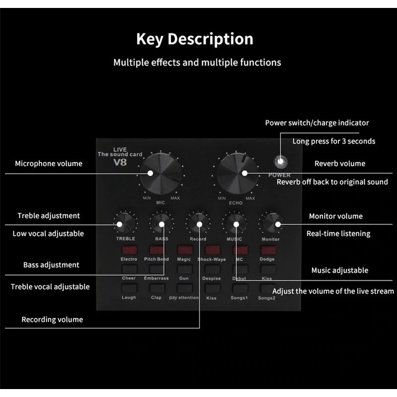 Popcorn Bm800 With V8 Soundcard Condenser Microphone Profesional Audio Kartu Suara Set Untuk Karaoke Podcast Rekaman Liv