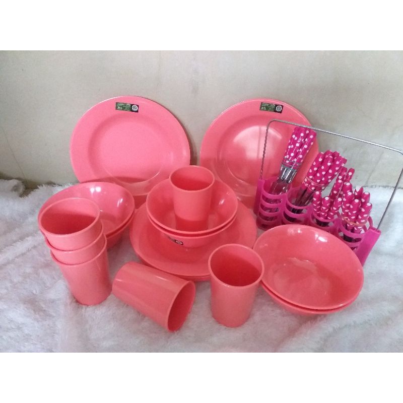 PAKET 18 MELAMIN PLUS SENDOK POLKADOT