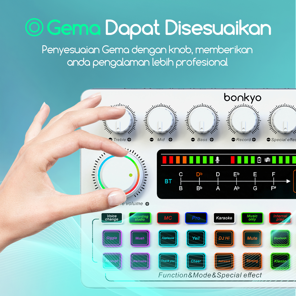 Hi-Net&Bonkyo Soundcard Paket Streaming Lengkap F999X Sound Card + Headset+ Lampu Pengisi | Cocok Untuk Penyanyi Tiktok,