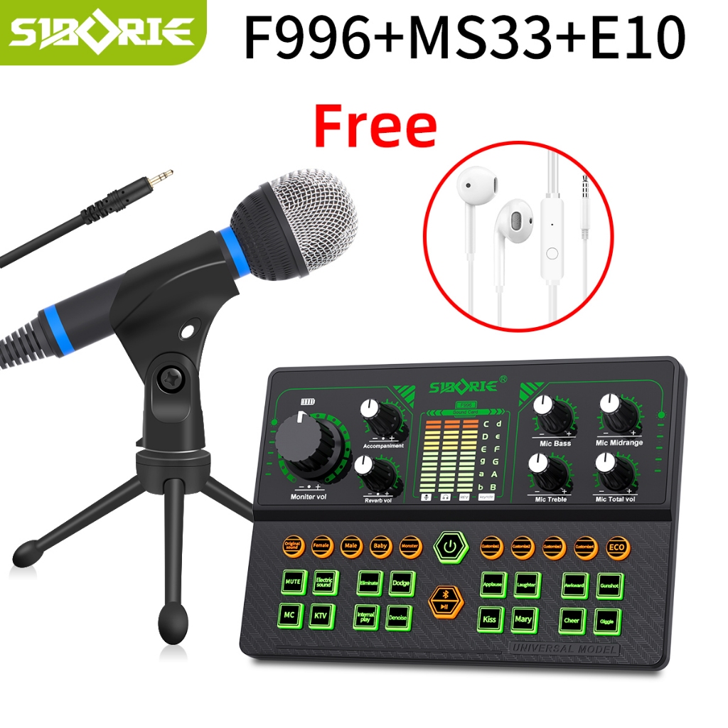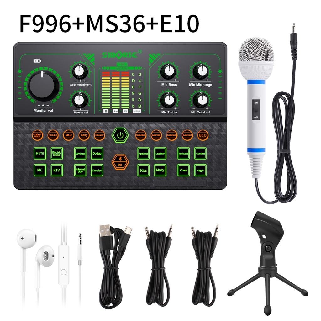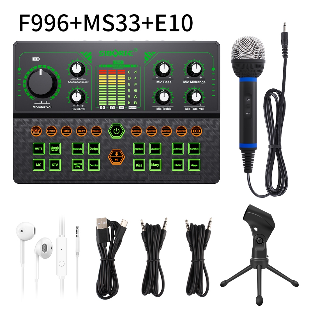 Siborie F996+Ms33/36/38 Mic+E10 Headset Paket Lengkap Soundcard Headset Full Set For Live Streaming Media