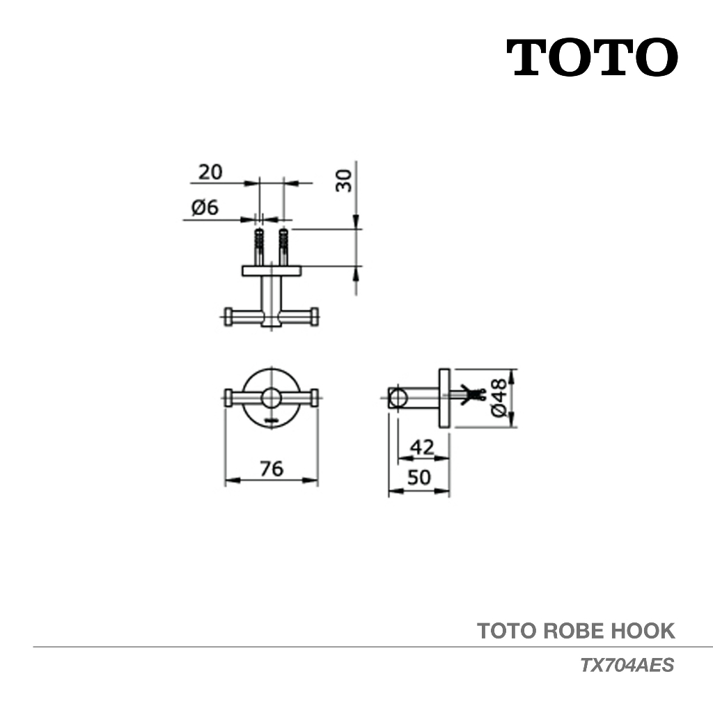 TOTO Double Robe Hook TX704AES | Gantungan Kamar Mandi