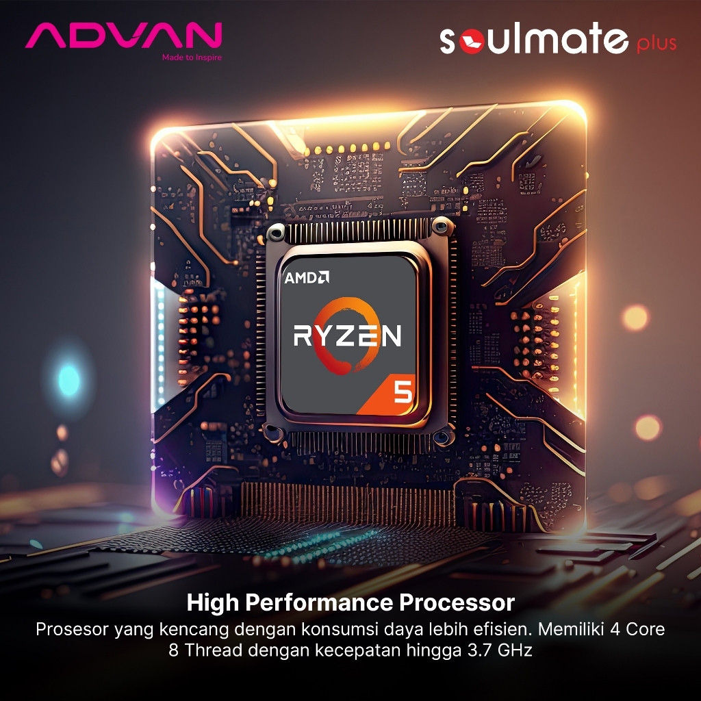 Advan Laptop Soulmate Plus | Amd Ryzen 5 3500U | 8Gb/256Gb Upgradable | Wifi 5 | Free Windows 11 | Garansi Resmi 1 Tahun