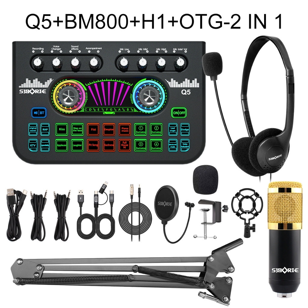 Paket Lengkap Soundcard Q5+Bm800 Mic+H1 Headphone+Otg-2In1 Set Dengan Braket Kantilever Komplit