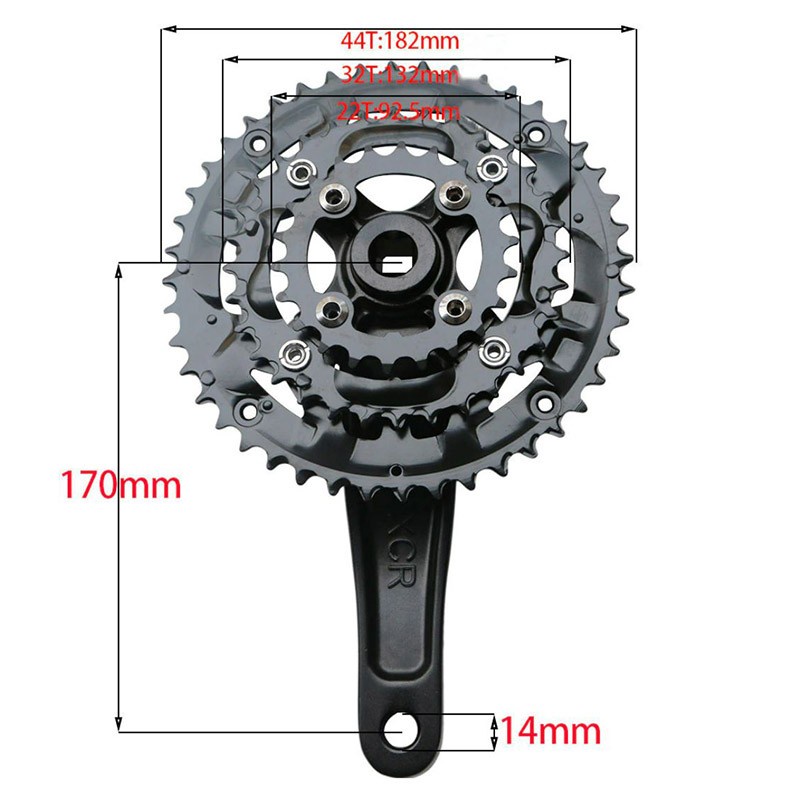 Jiankun XC Crankset Triple Crank 170 mm Square Kotak BCD 104 Hitam