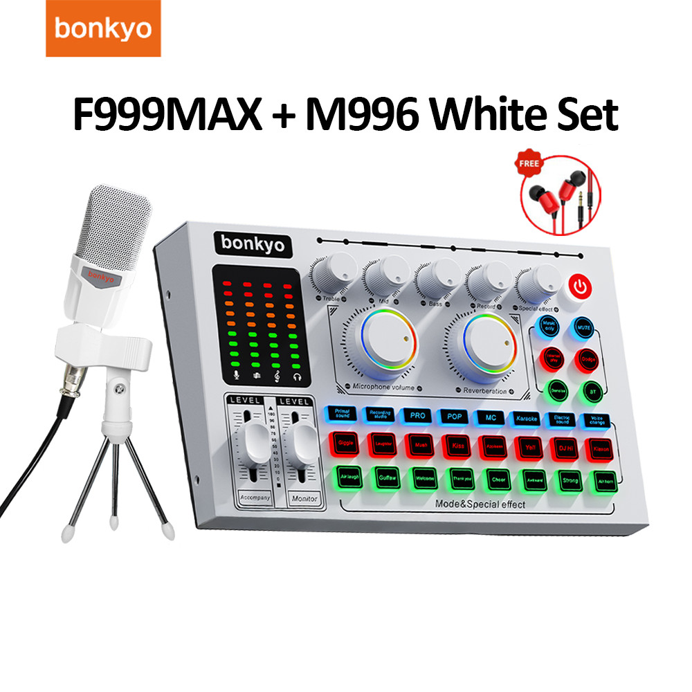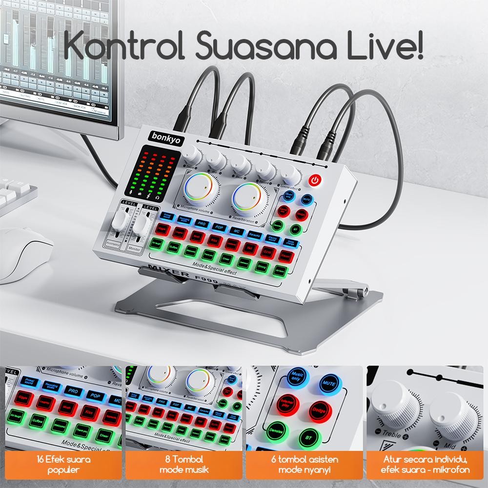 Bonkyo Paket Peralatan Streaming Lengkap - Sound Card F999Max + Mikrofon M996 + Headset Kabel Gratis Cocok Untuk Menyan