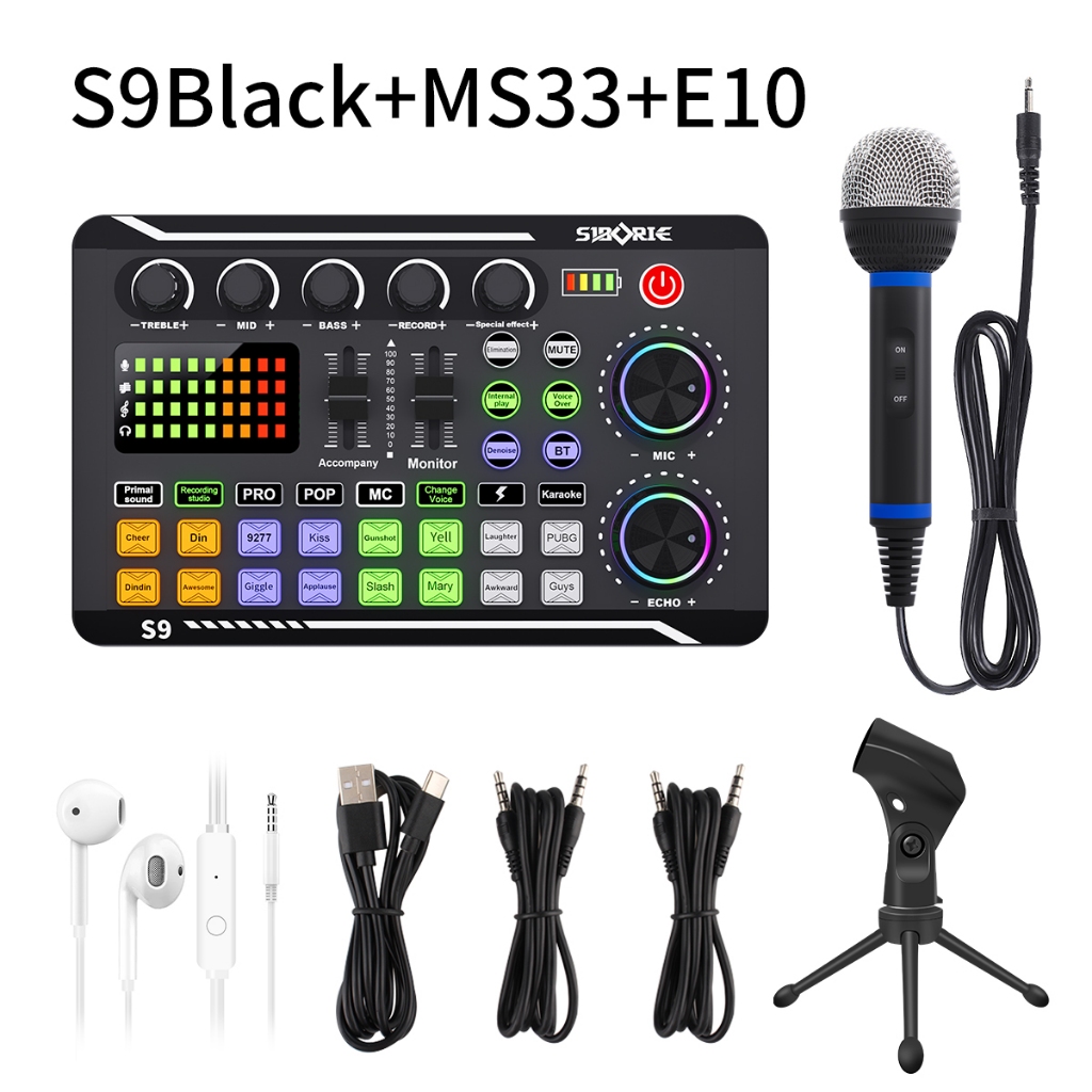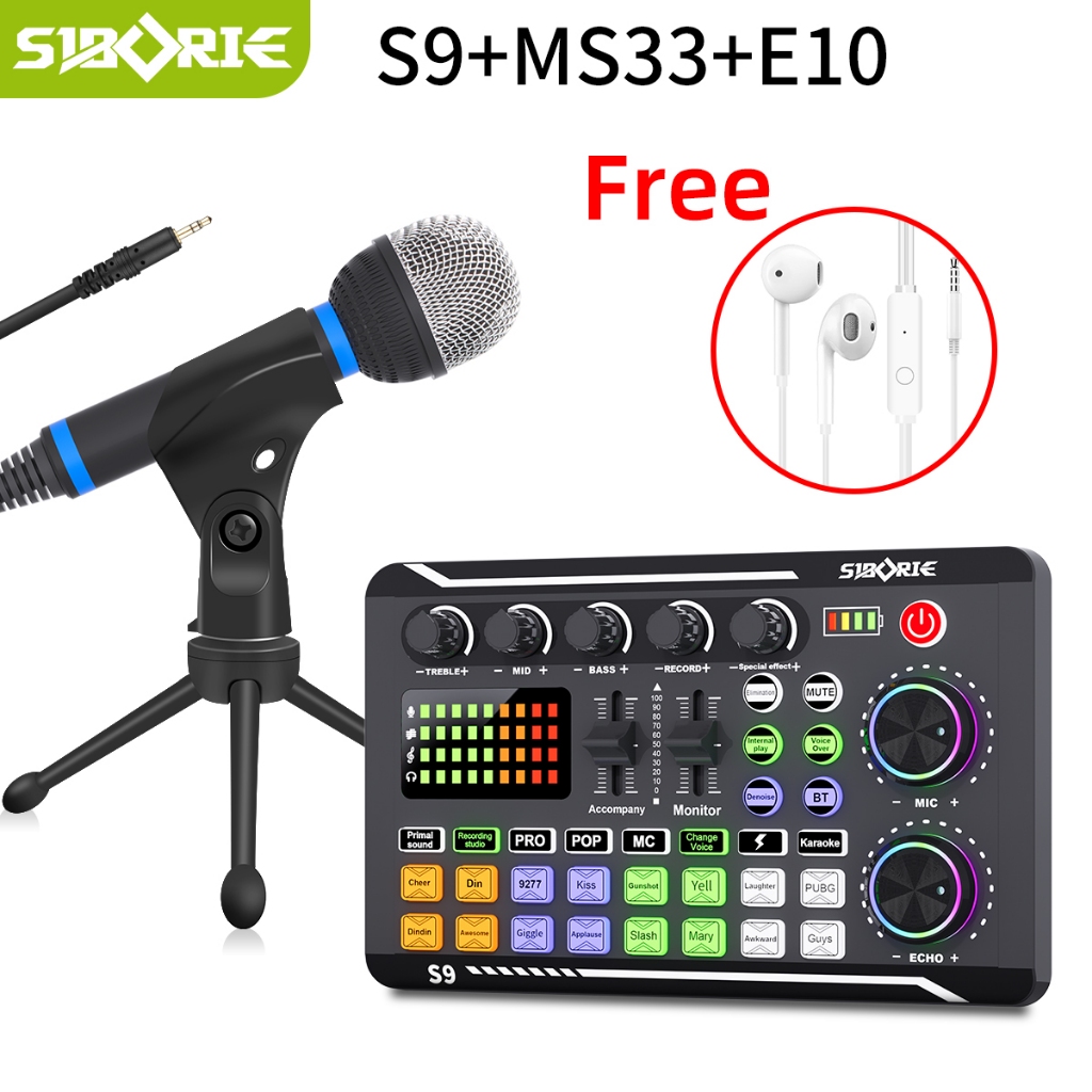 Siborie S9+Ms33/36/38+E10 Paket Lengkap Live Soundcard Mic Headset 3 In 1 Karaoke For Streaming Langsung 100 PERSEN Original