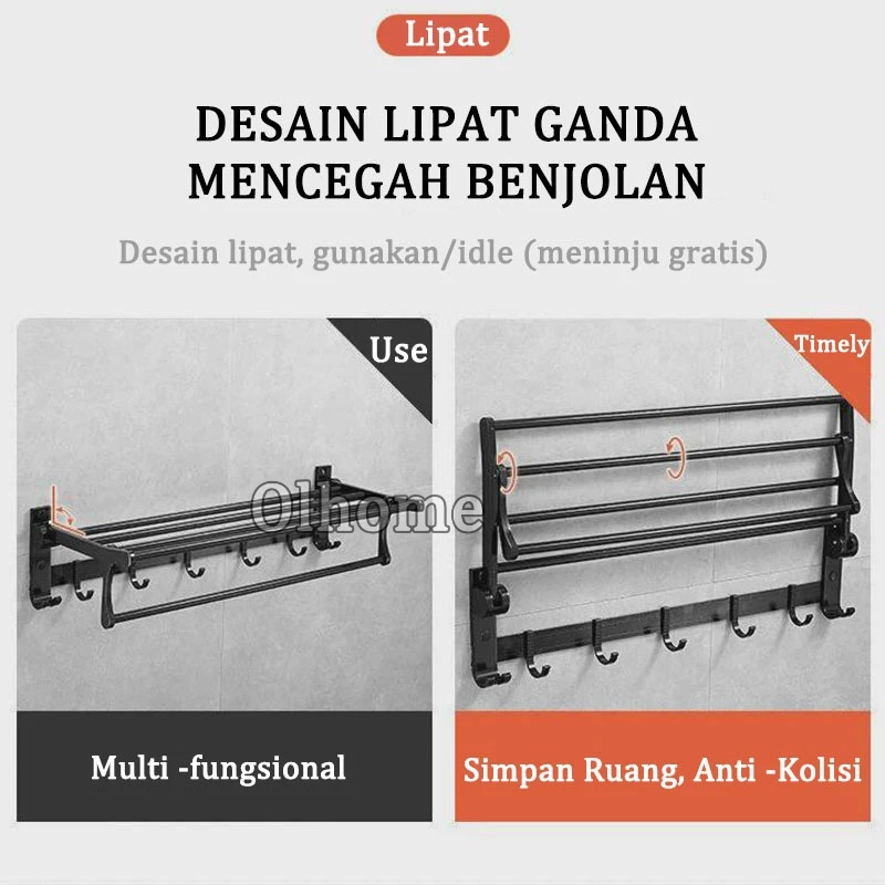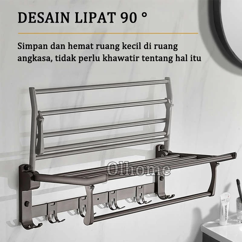 Olhome Rak Dinding Kamar Mandi Gantungan Handuk Lipat Aluminium Rak Multifungsi Rak Handuk