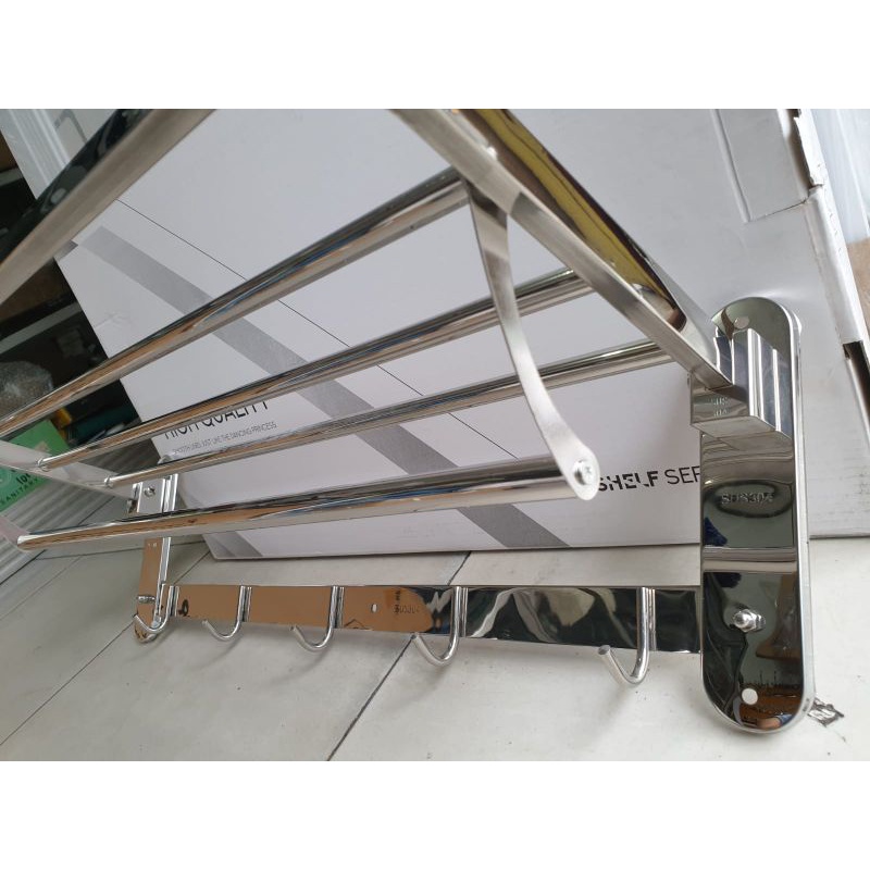 Rak handuk 5 baris lipat hitam / full stainless SUS304 anti karat PROMO