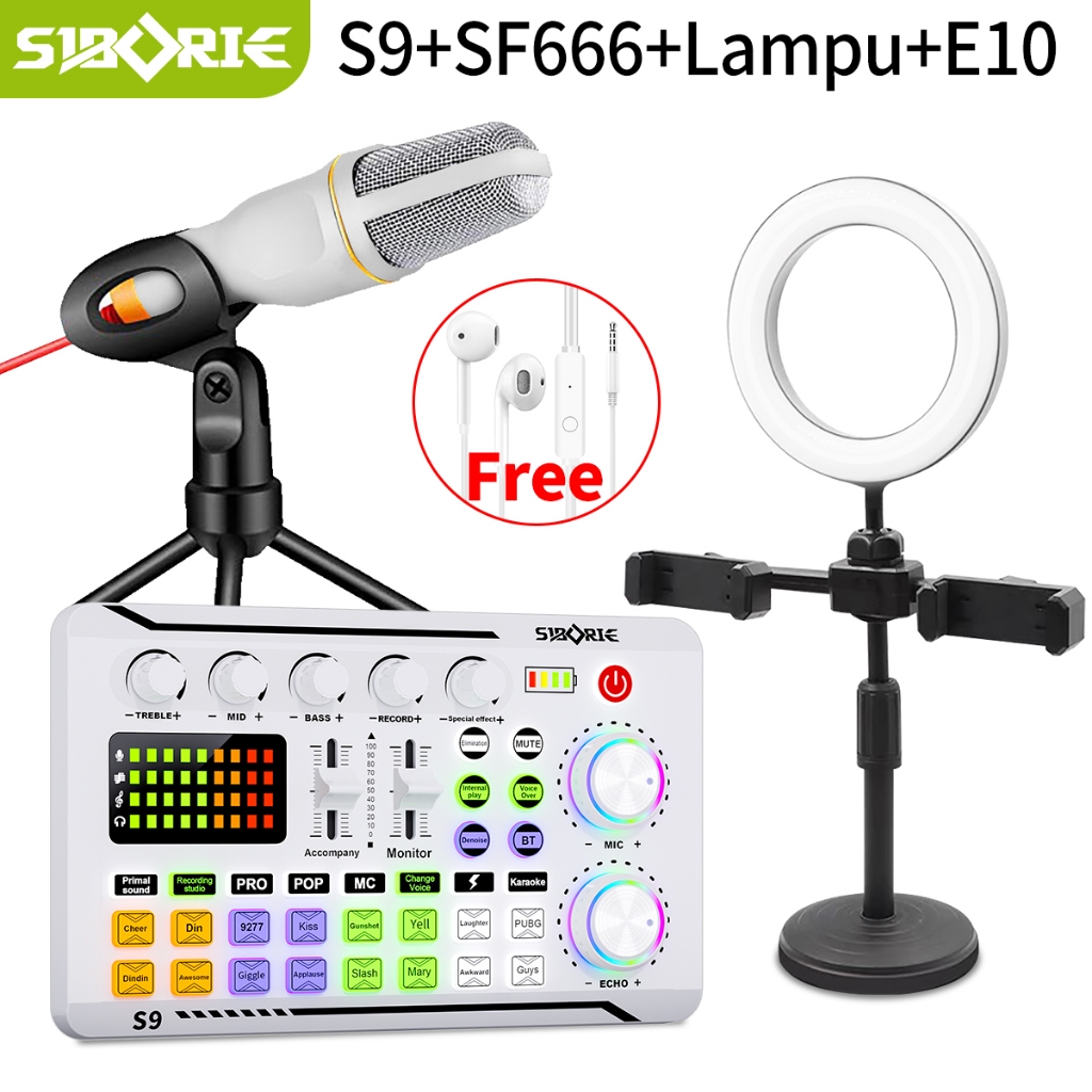 Siborie Siap S9+Sf666+E10+Lampu Paket Lengkap Soundcard Mic Headset Light Streaming Langsung 100 PERSEN Original Pengiriman C
