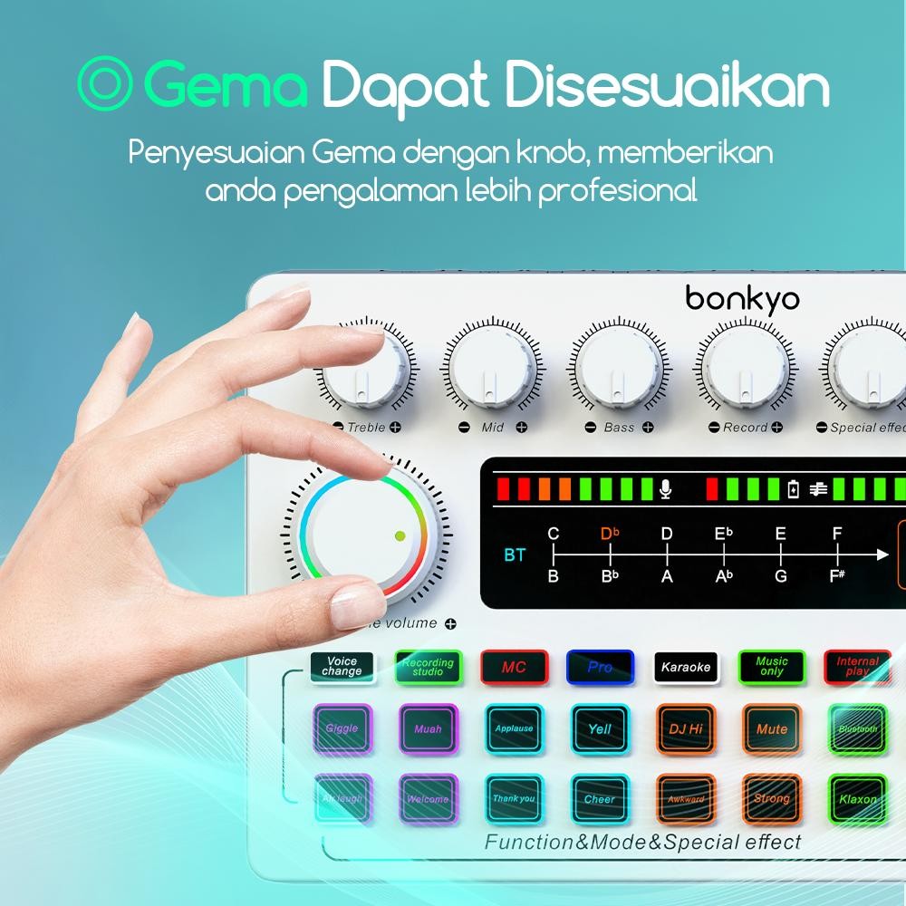 Bonkyo Paket Streaming Lengkap F999X: Sound Card + Mikrofon M990 + Headset Oh06+ Lampu Pengisi | Cocok Untuk Penyanyi Ti