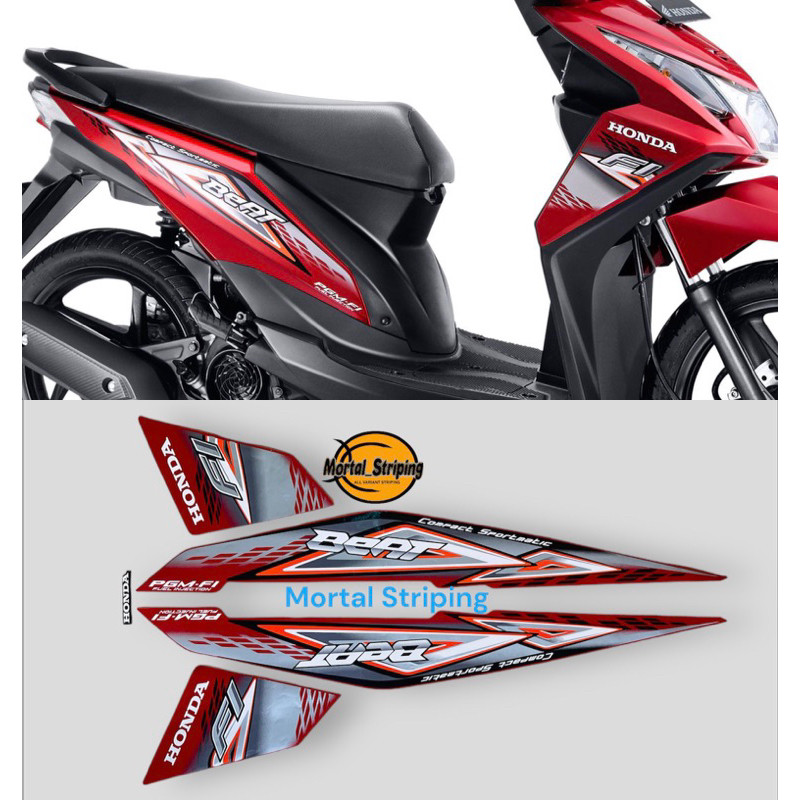 STIKER STRIPING LIS BODY BEAT FI 2013 2014 PUTIH CORAK MERAH STANDAR
