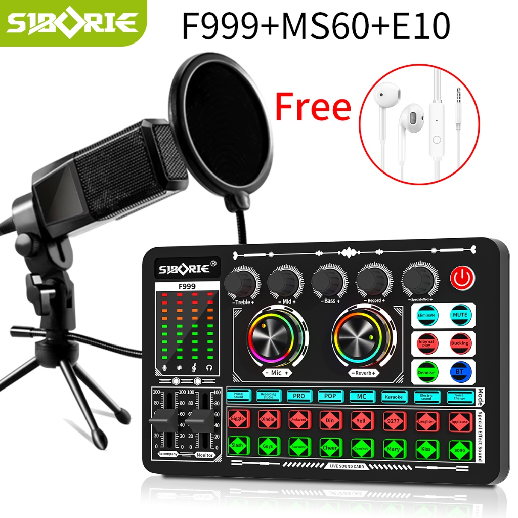 Siborie 【Free Headphone】F999 Soundcard+Ms60 Microphone Paket Lengkap Set Sound Card 1 Mic Stand