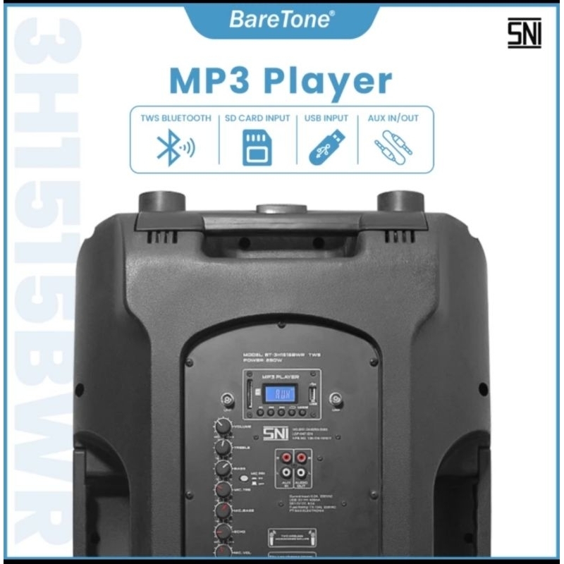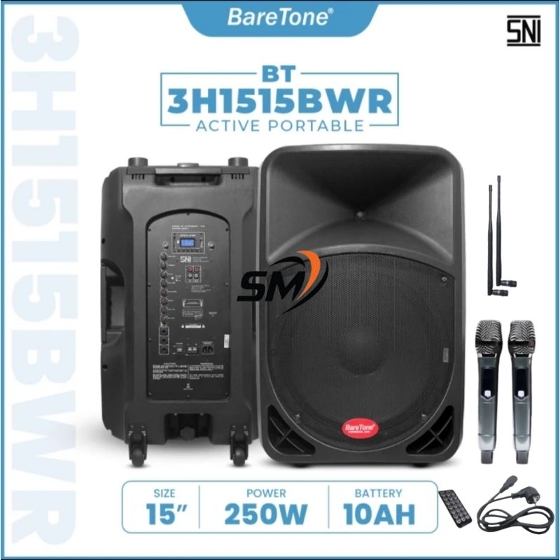 Speaker Portable Aktif 15 Inch Bluetooth Baretone Bt-3H1515Bwr Garansi Resmi Baretone [ Original 100 PERSEN ]