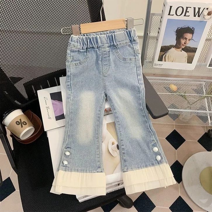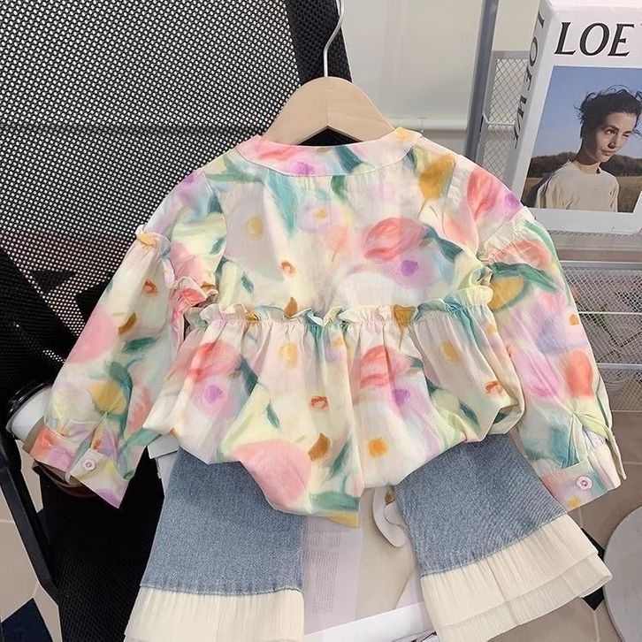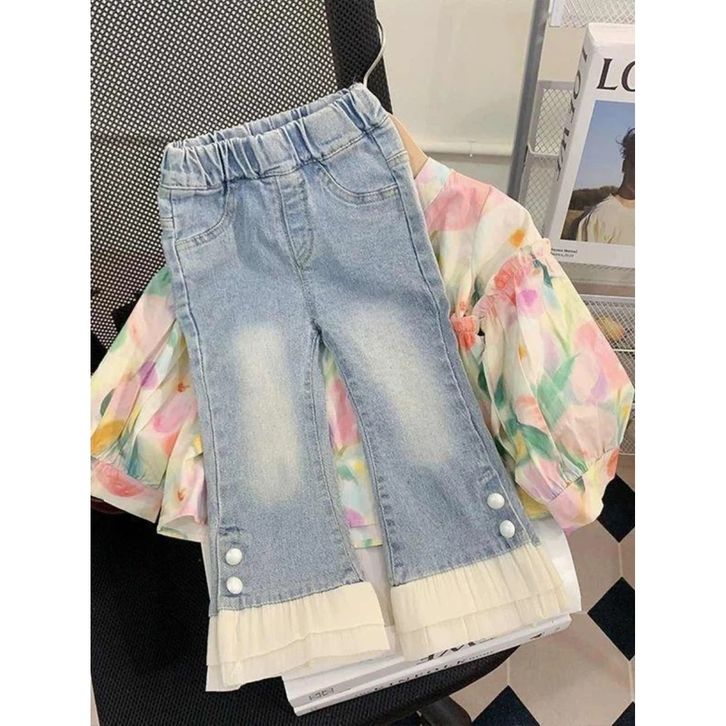 Terbaru Setelan Anak Perempuan Blus Bunga + Celana Panjang Jeans Anak Cewek
