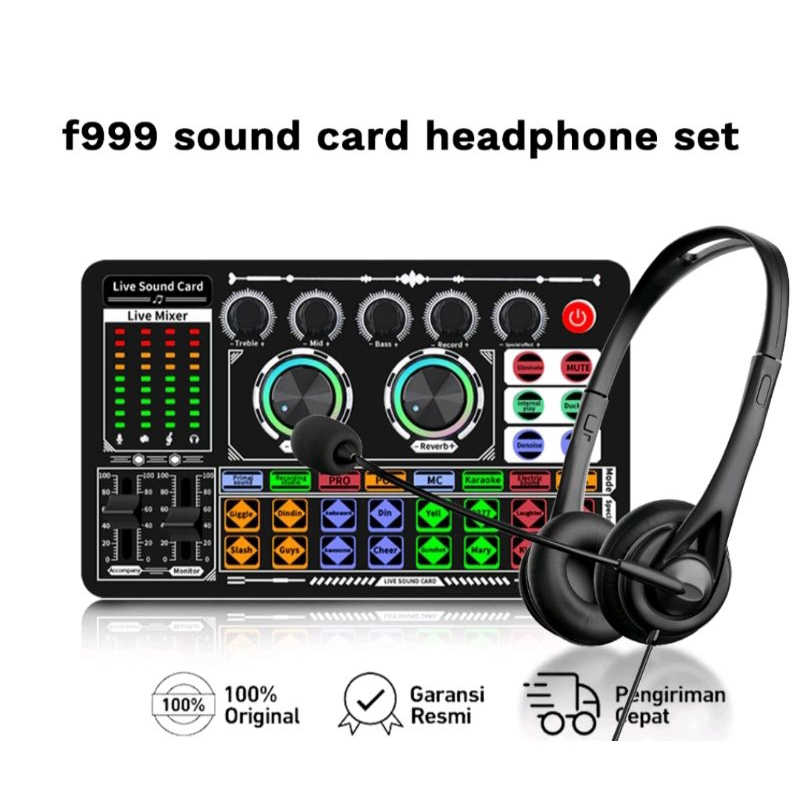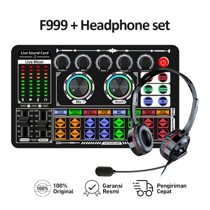 Soundcard F999 Set Peralatan Bernyanyi Gratis Handphones Headset+ Microphone Siaran Langsung Dengan Handphone
