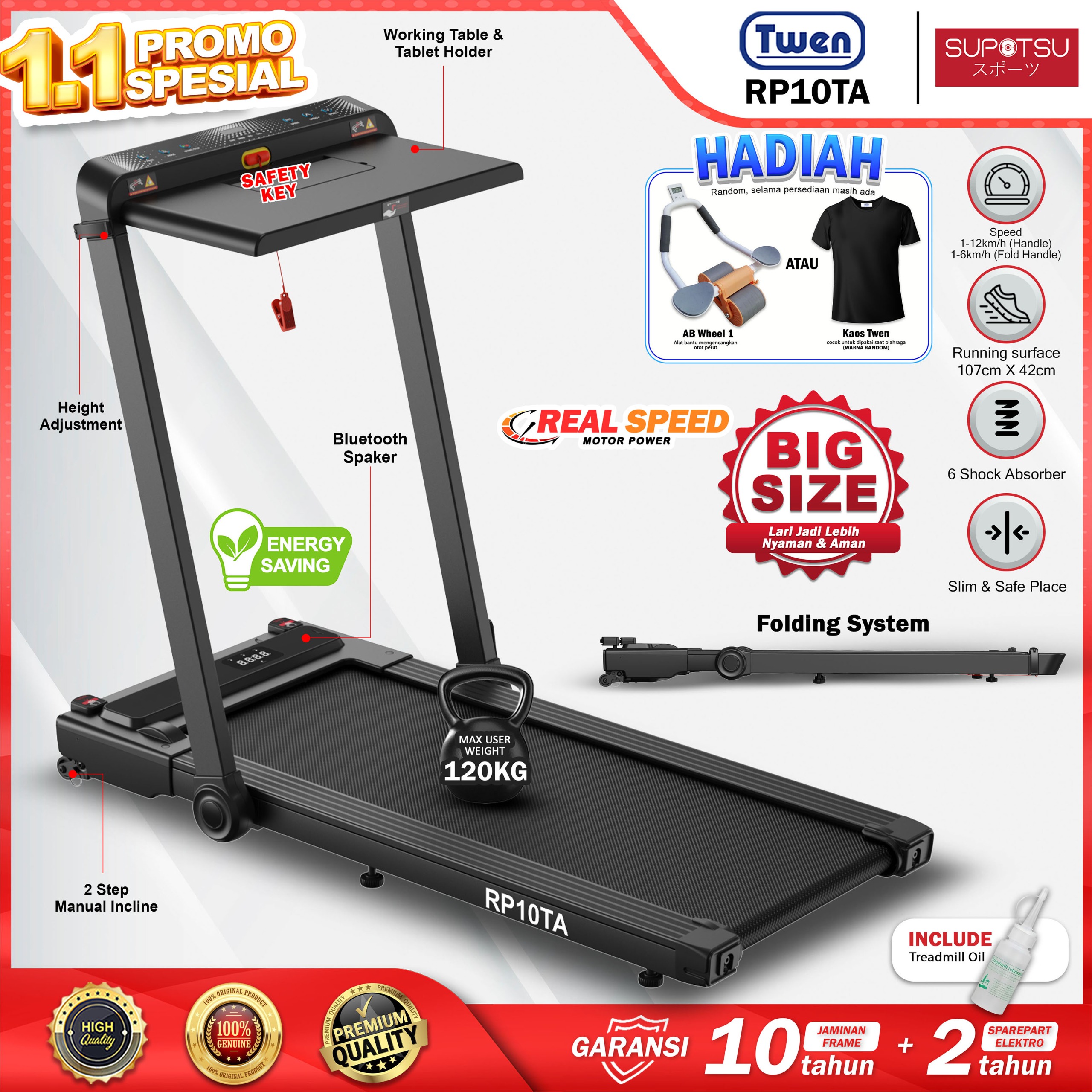 TWEN RP10TA Treadmill Listrik Treadmill Portable Treadmill Walking Pad Treadmill Running Pad Treadmill Multifungsi Tread