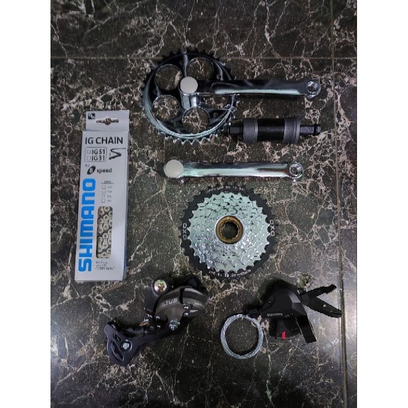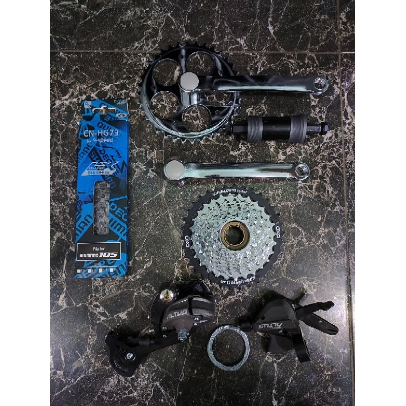 Groupset Shimano 6 7 8 9 Speed Altus M370 Alivio M4000 Ulir Drat Freewheel with Crankset Kotak Single Original Federal M
