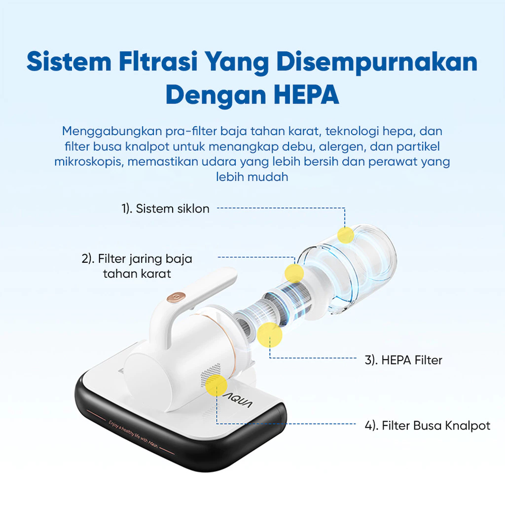 AQUA ASM Y301 10Kpa UV Anti Dust Mite Vacuum Cleaner Kasur Sofa Sedot Debu Anti Tungau Tangki 0.4L