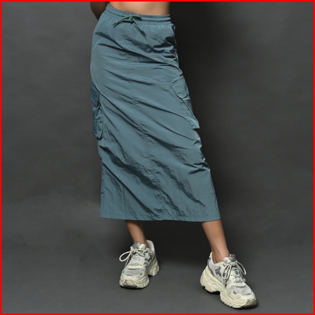Queentin Rok Kargo Wanita Casual 0401 Katun Parasut Twill Polos Premium