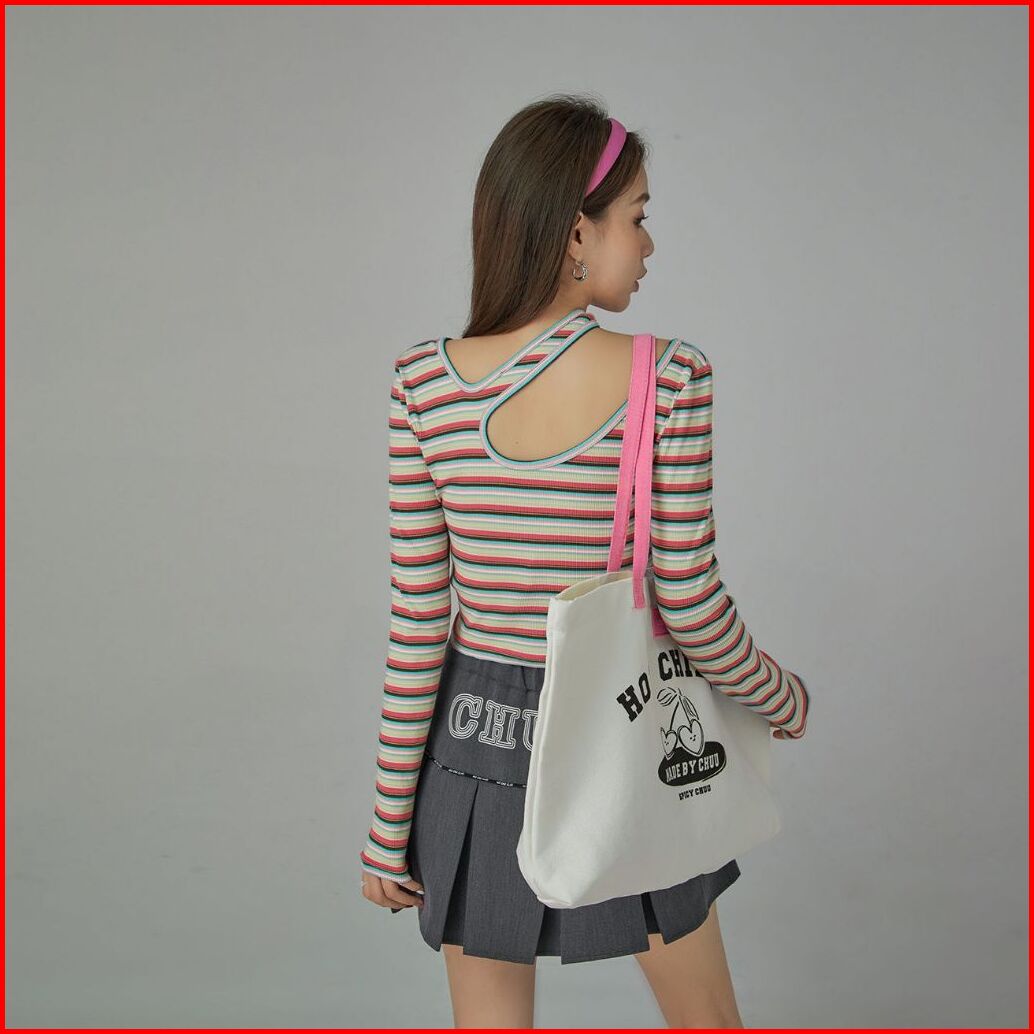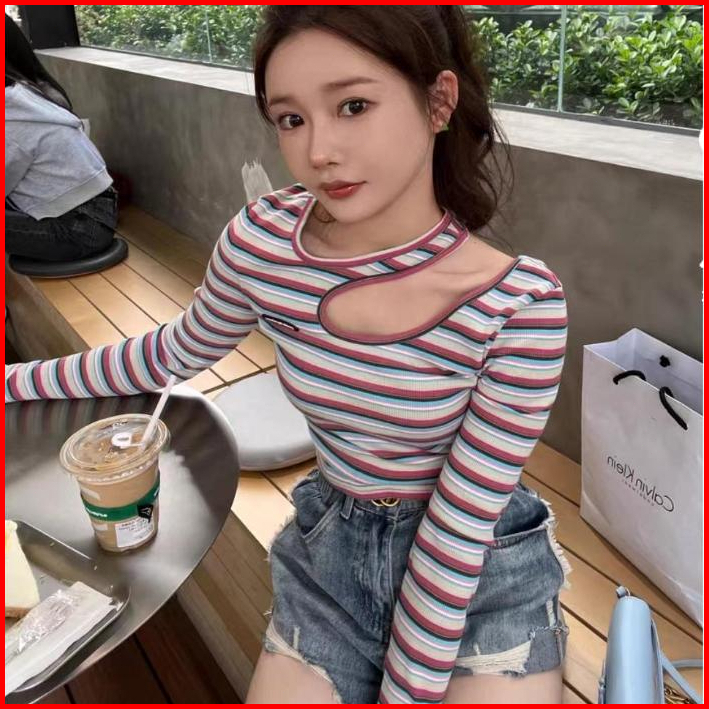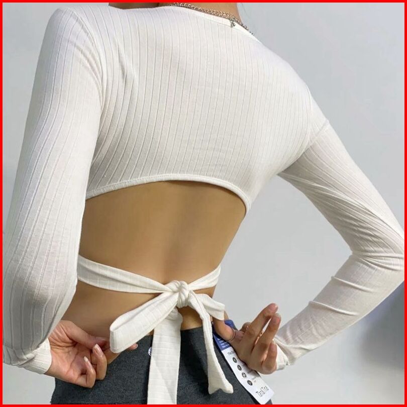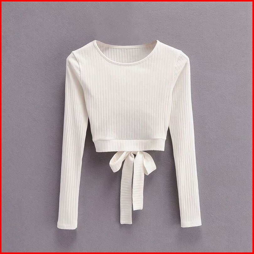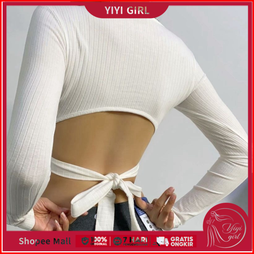 Yiyi Girl Basic Blouse Korean Style Wanita Lengan Panjang Crop Top