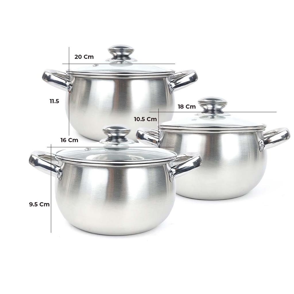 Panci Labu Jumbo Tutup Kaca Isi 3 Pcs Soup Set Stainless Steel Panci Pumpkin Pots