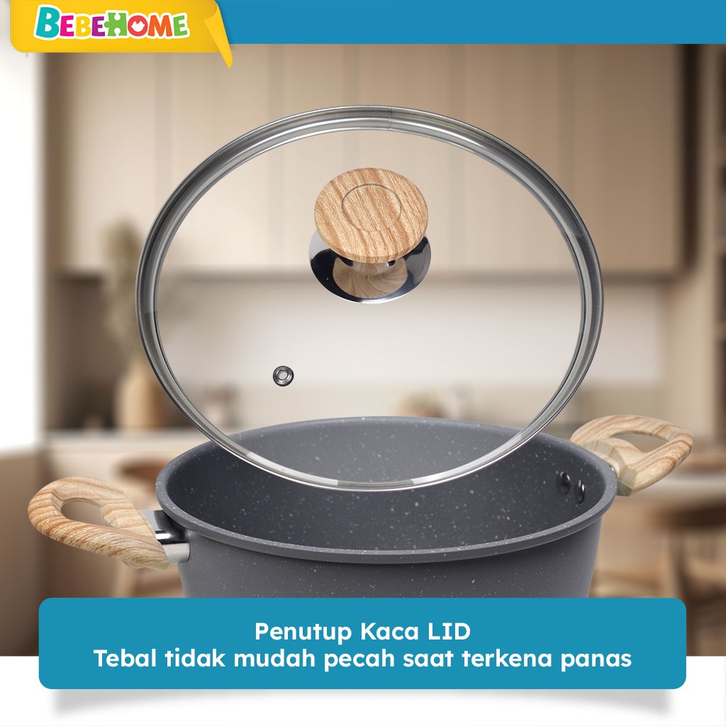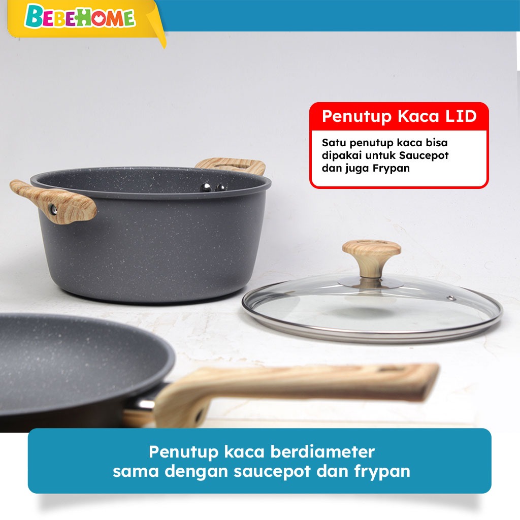 BEBEHOME X Tifale Celeste 3in1 Set Dark Grey Granite Casserole Frypan Saucepot 24CM Anti Lengket