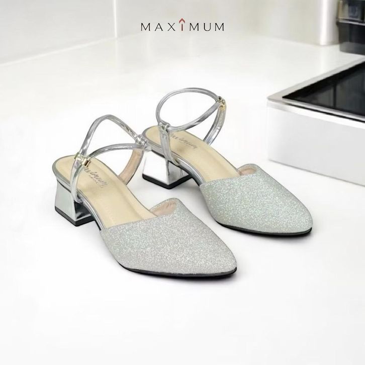 Maximum Heels Wanita Kondangan Pesta Sandal Slip On Cantik Model Glitter Kekinian Terbaru