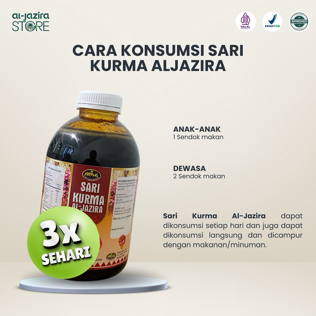 [Mall] Al-Jazira Sari Kurma 1 KG Gratis AMH Jahe Merah Penambah Nafsu Makan Dan Penggemuk Badan - BPOM RI MD