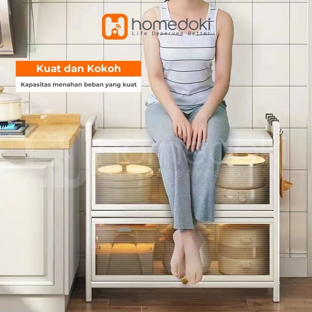 Homedoki Rak Piring Tertutup / Rak Dapur / Lemari Piring/ Rak Susun Serbaguna / Rak Penyimpanan Multi-layer Dengan Roda