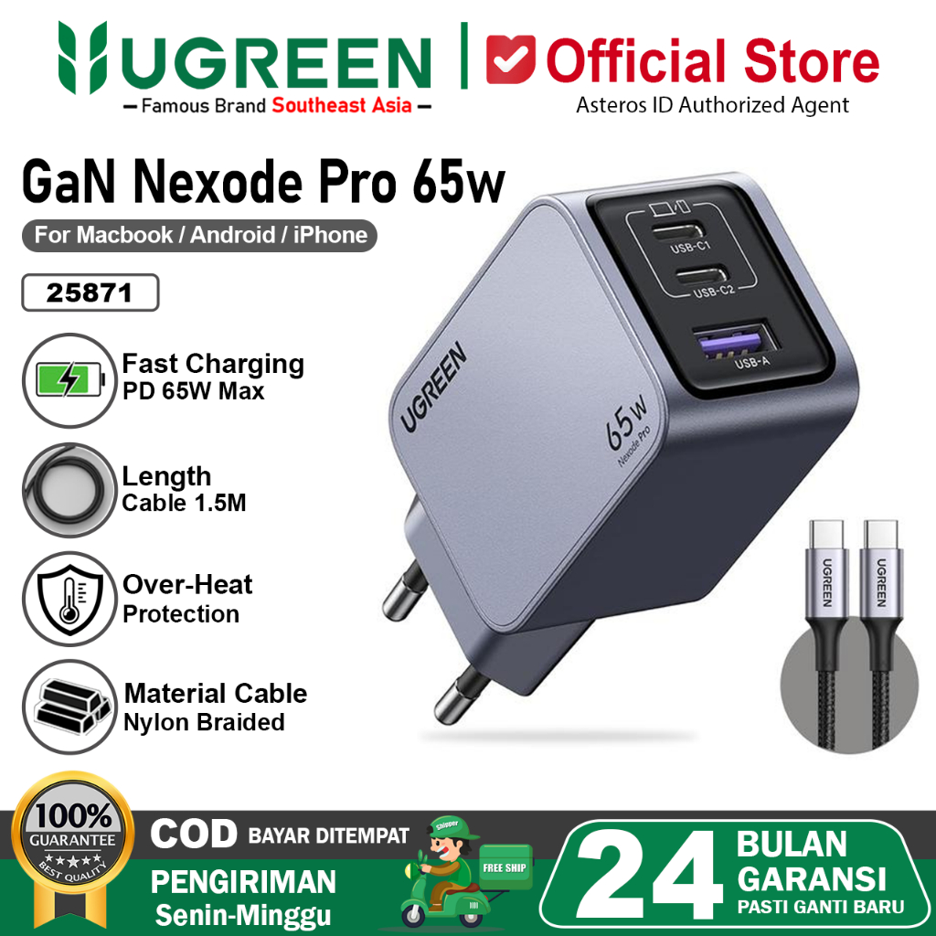 [Mall] UGREEN Charger GAN Nexode Pro 65w USB Type C Fast Charger For Laptop Macbook Ipad Handphone