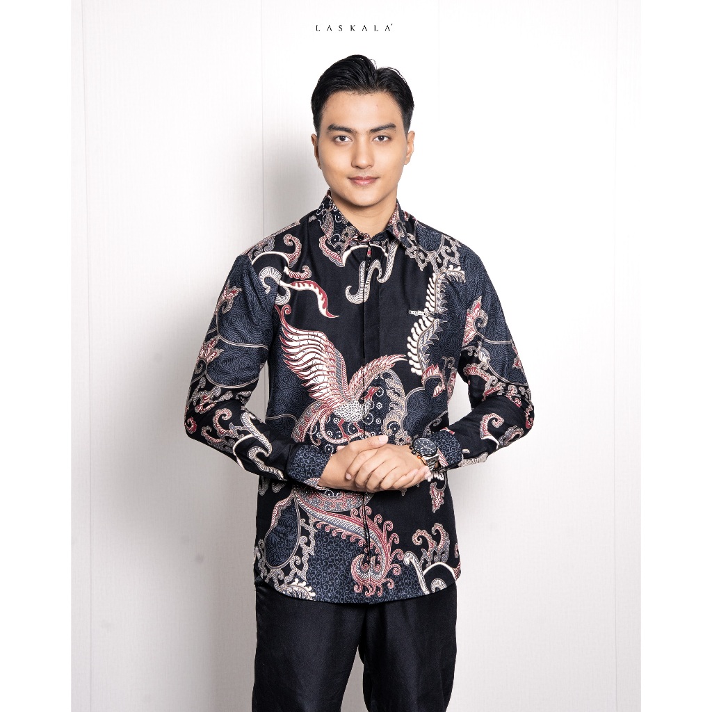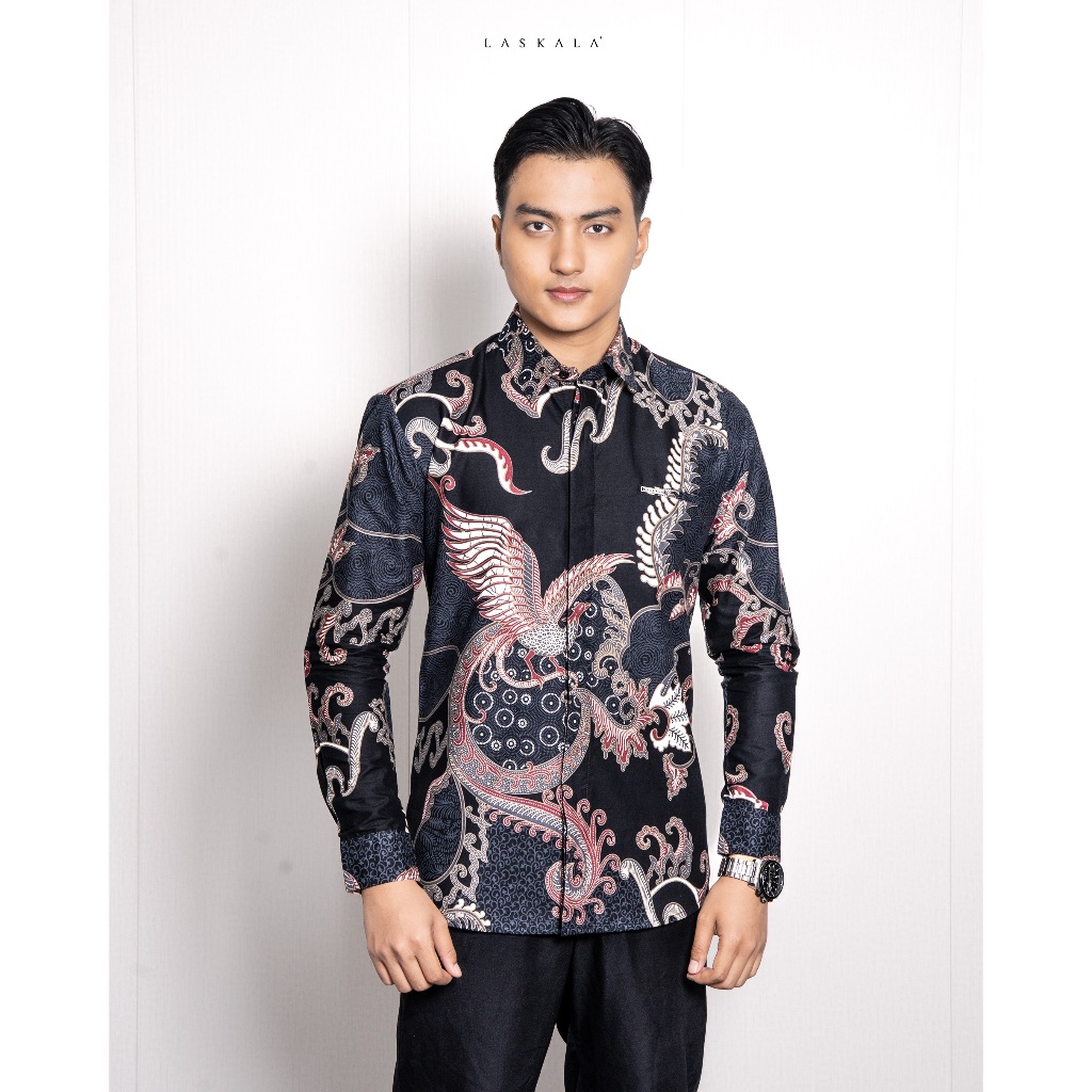 Laskala Batik Premium Dahana Black Kemeja Batik Pria Slimfit Lengan Panjang