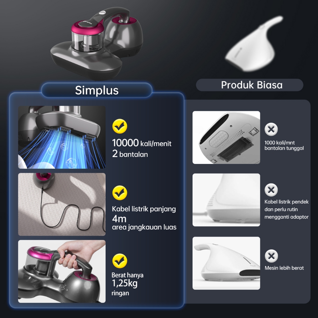 Simplus Pembasmi Tungau 14000Pa Vakum Penghilang Tungau Frekuensi Tinggi 10000kali/menit