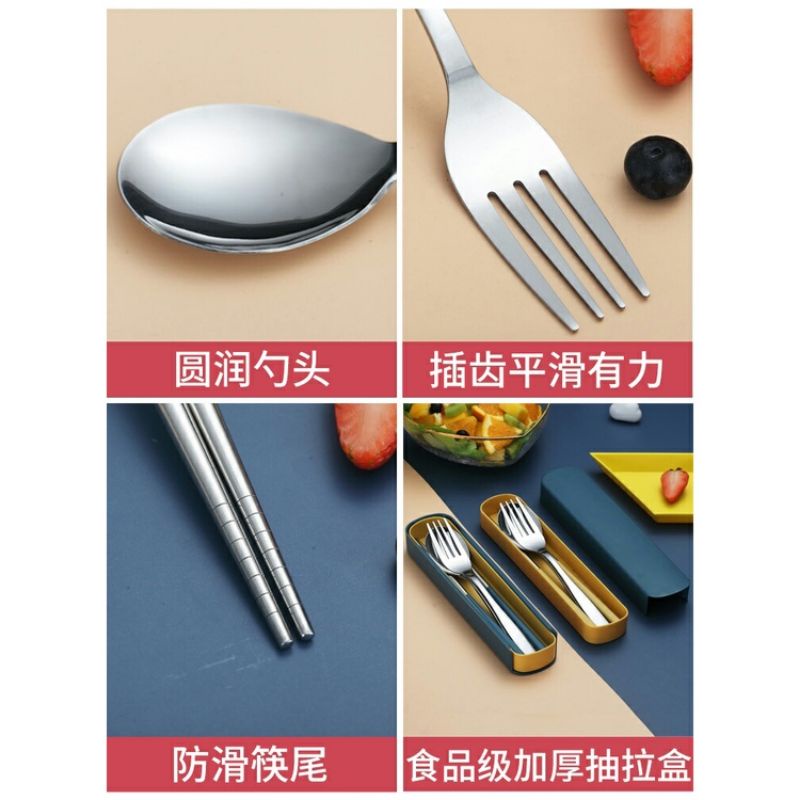Sendok Garpu Sumpit Stainless Set Portable + Kotak / Sendok Set 3 in 1travel