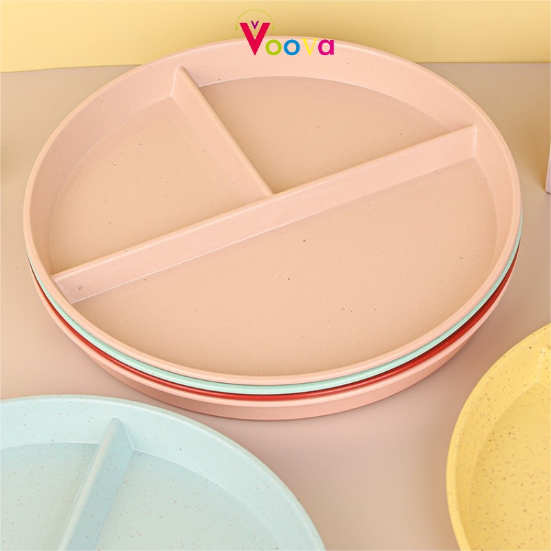 VOOVA Piring Makanan Yang Mengurangi Lemak/Piring Sekat/Piring Bundar Tiga Kotak/Peralatan Makan Satu Orang