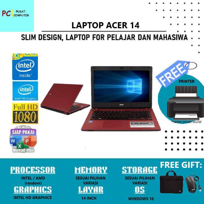 Laptop Acer Termurah Aspire 14 Inci Ram 8Gb Ssd 256Gb Win10 [Free Tas&Mouse]