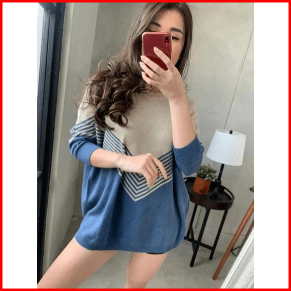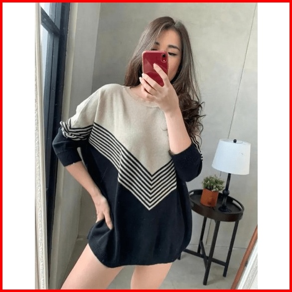 Elzaco Bara Rajut Oversize - Baju Atasan Wanita Bahan Rajut Premium Tebal Motif Stripe - Sweater Terbaru