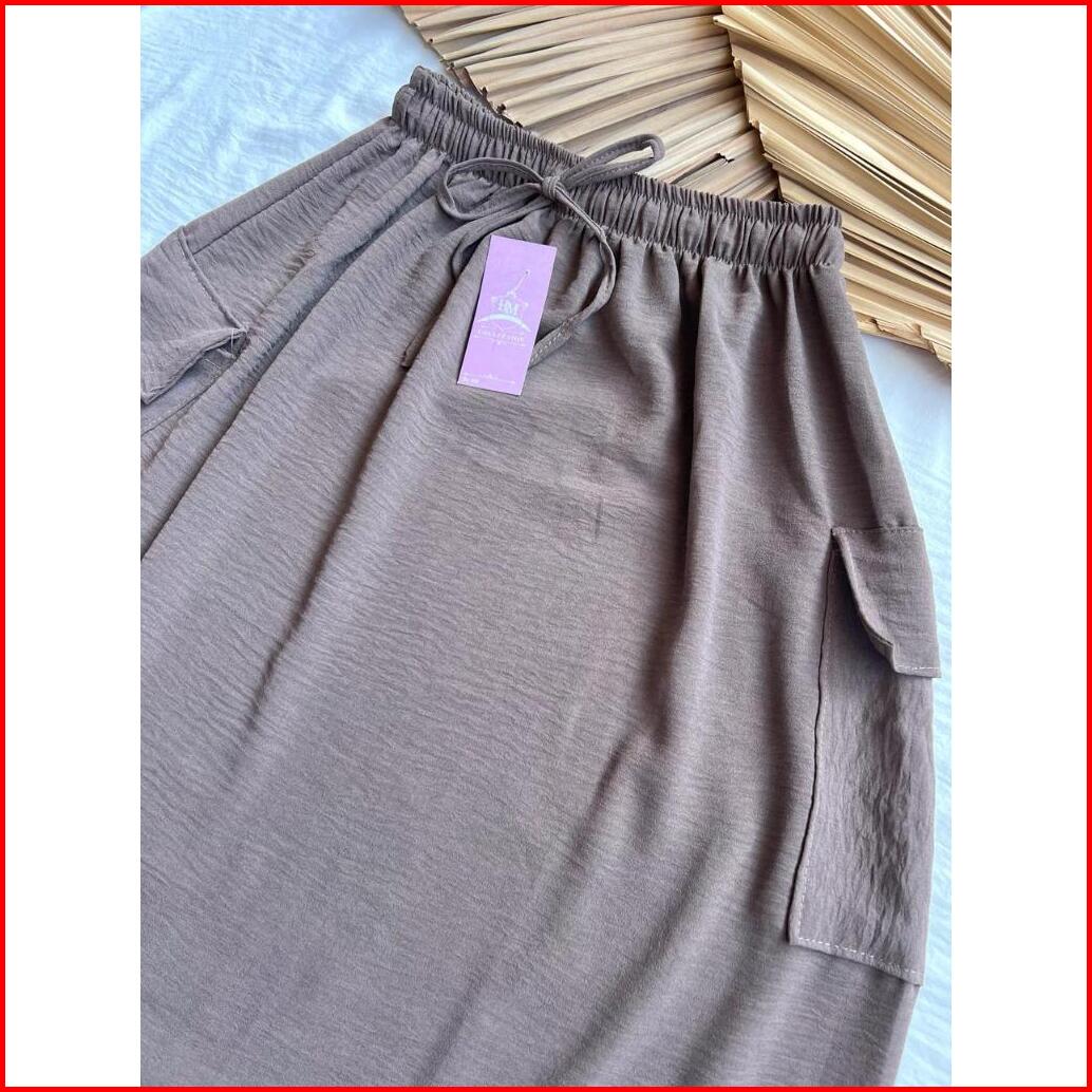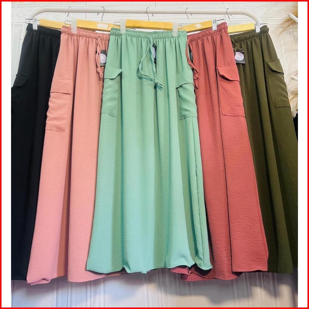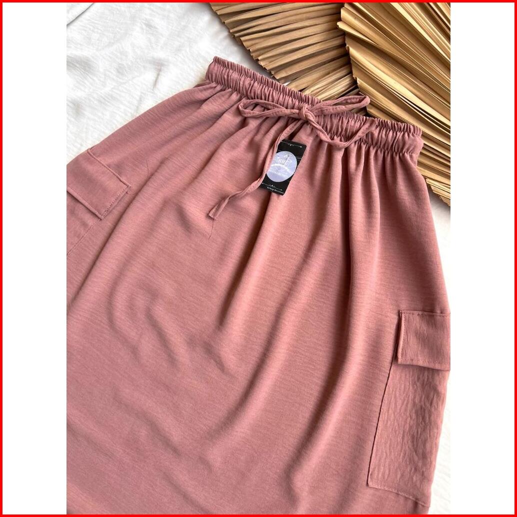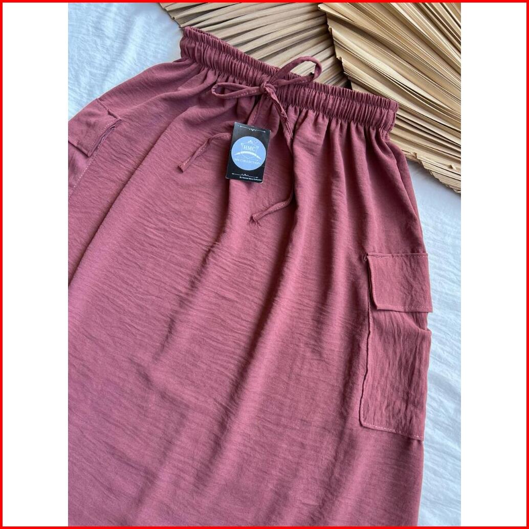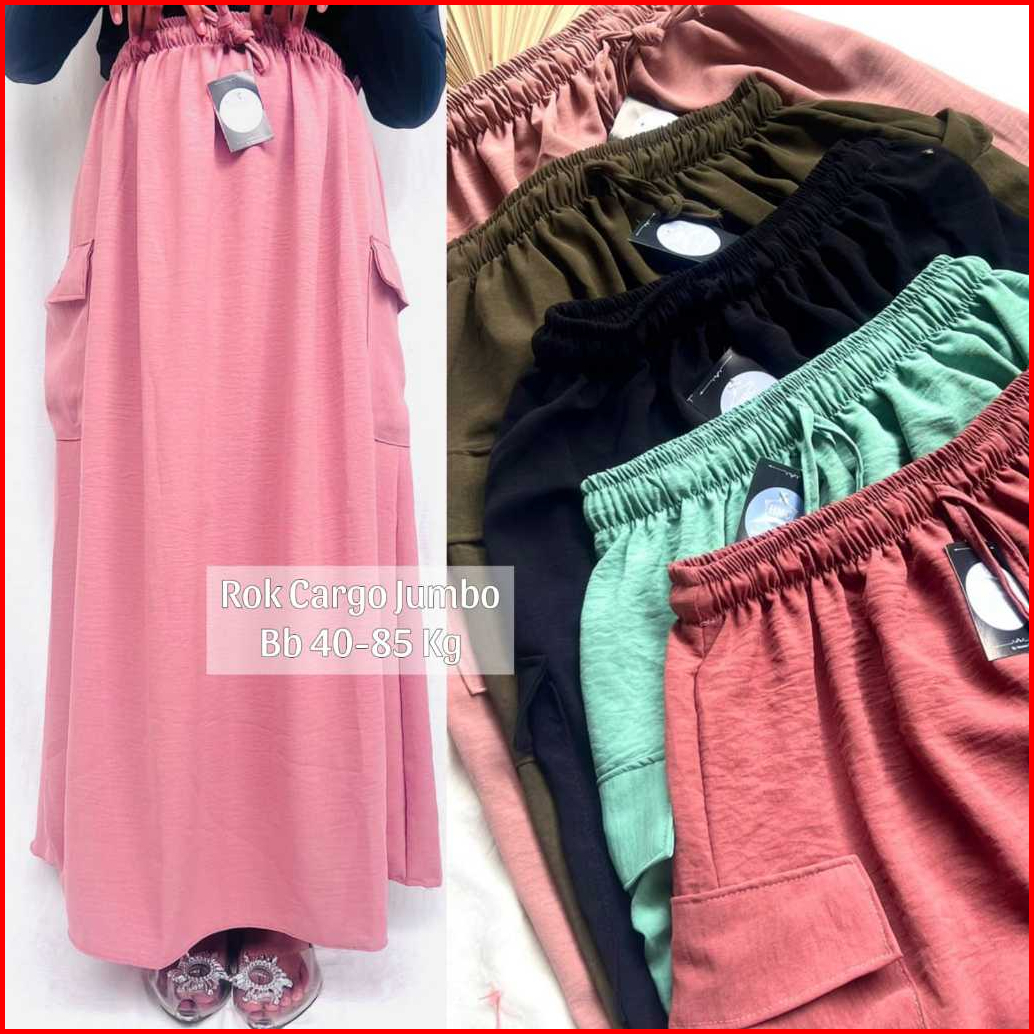 Rok Cargo Crinkle Airflow Premium Jumbo Rok Cargo Panjang Wanita Jumbo