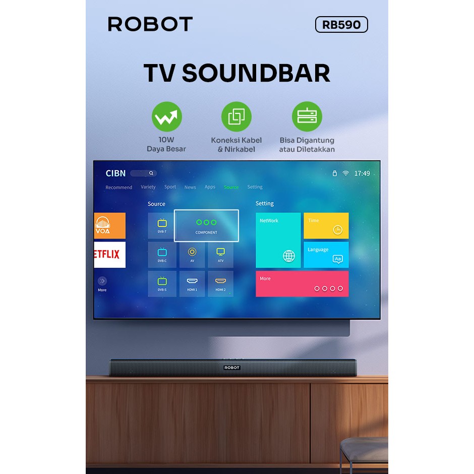 Robot Rb590 Soundbar Bluetooth Speaker Bass Tv Pc Aux 3.5Mm Micro Sd
