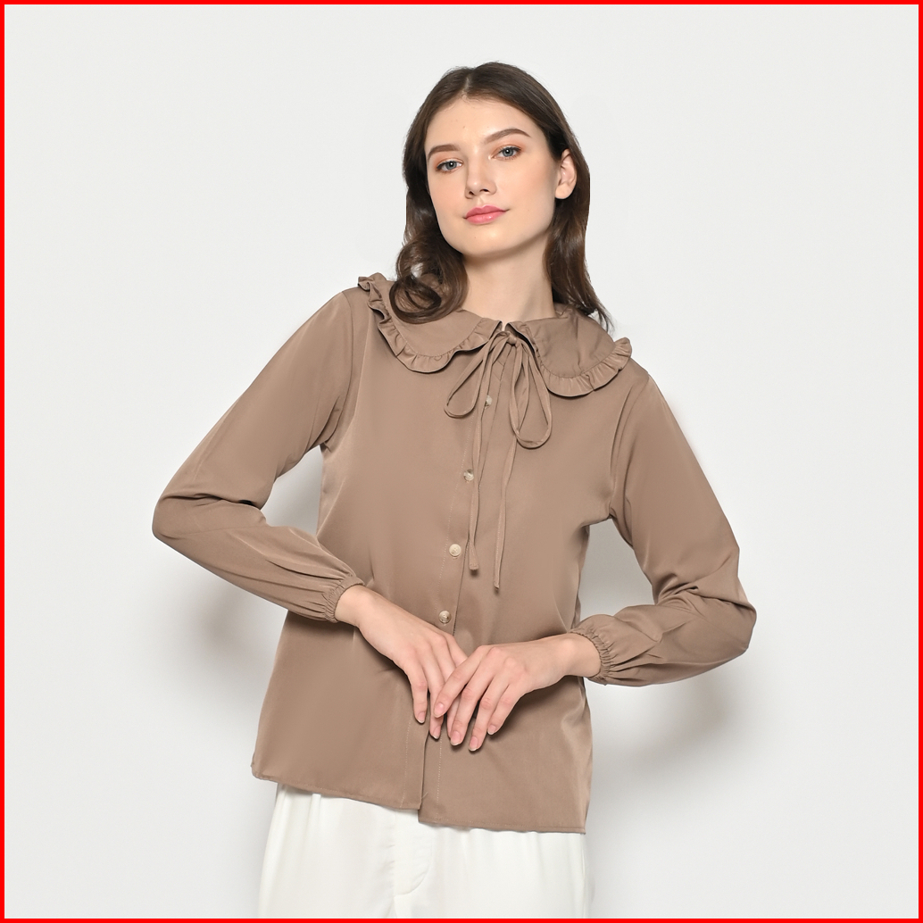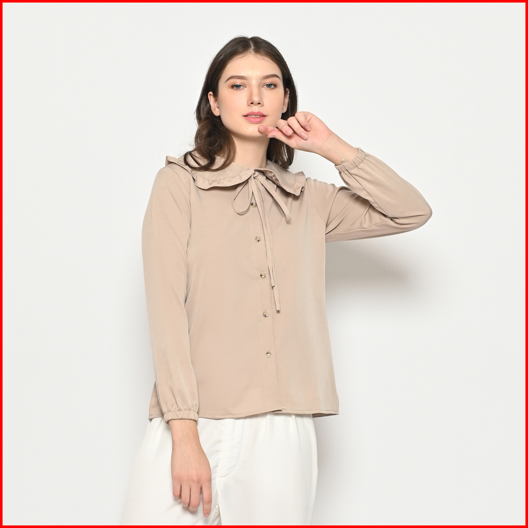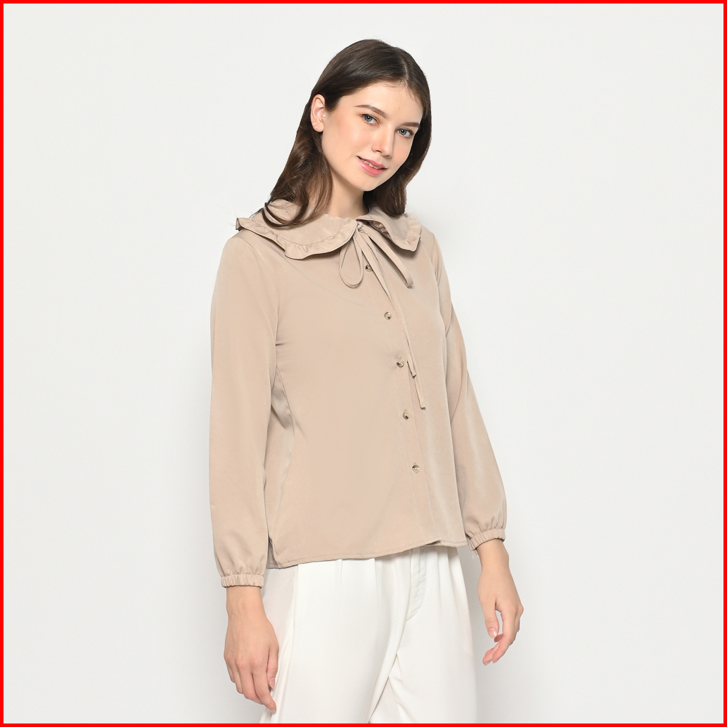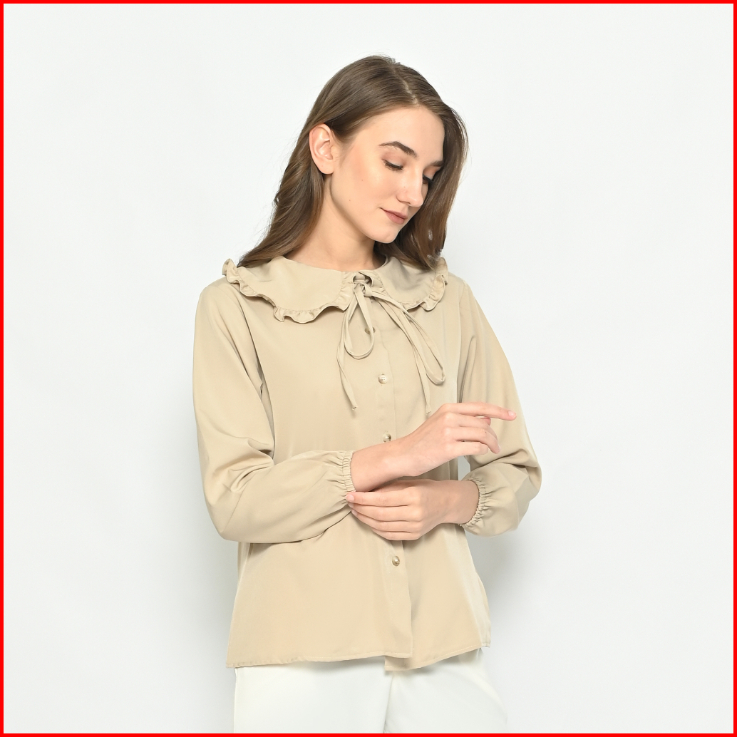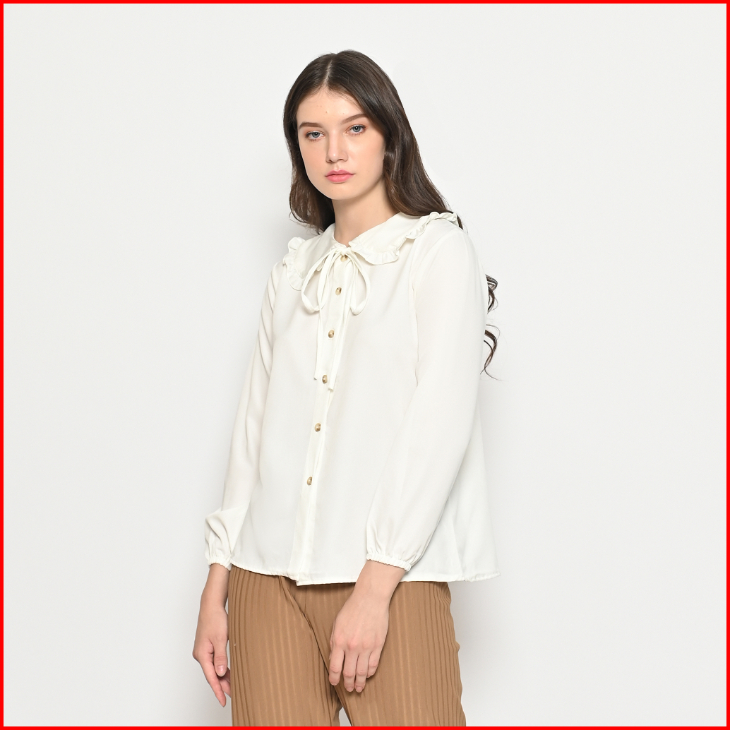 Queentin Kemeja Peterpan Collar Ruffle Wanita 0167 Primadonna Polos Lengan Panjang