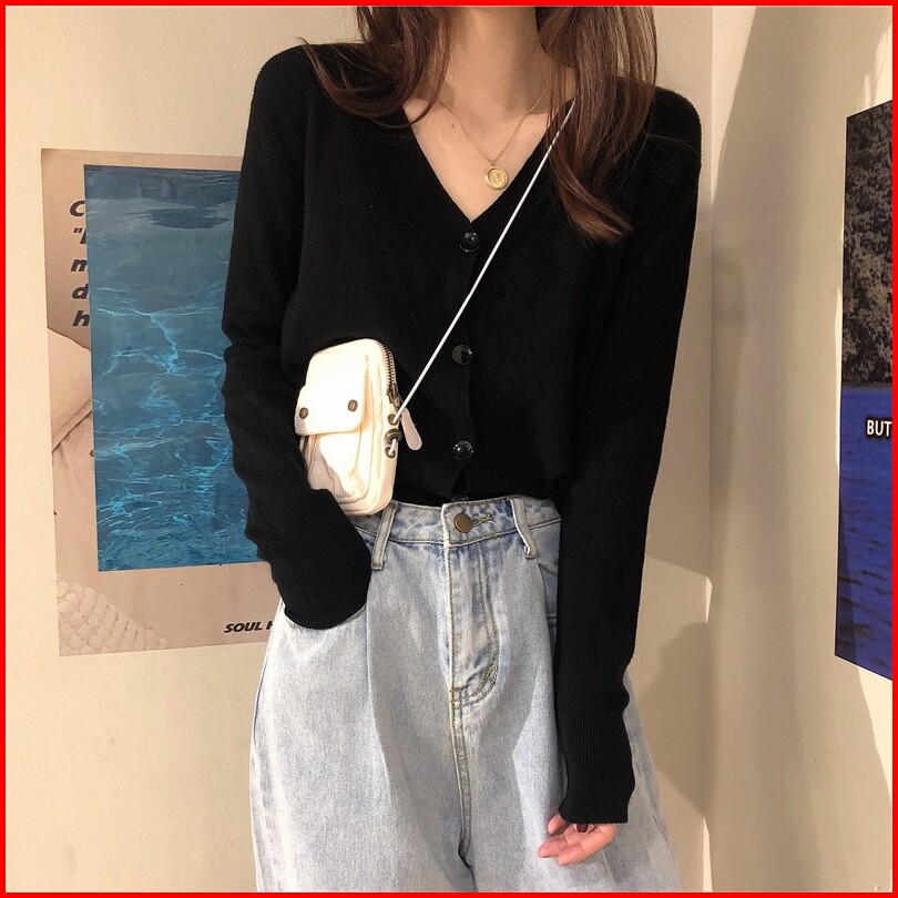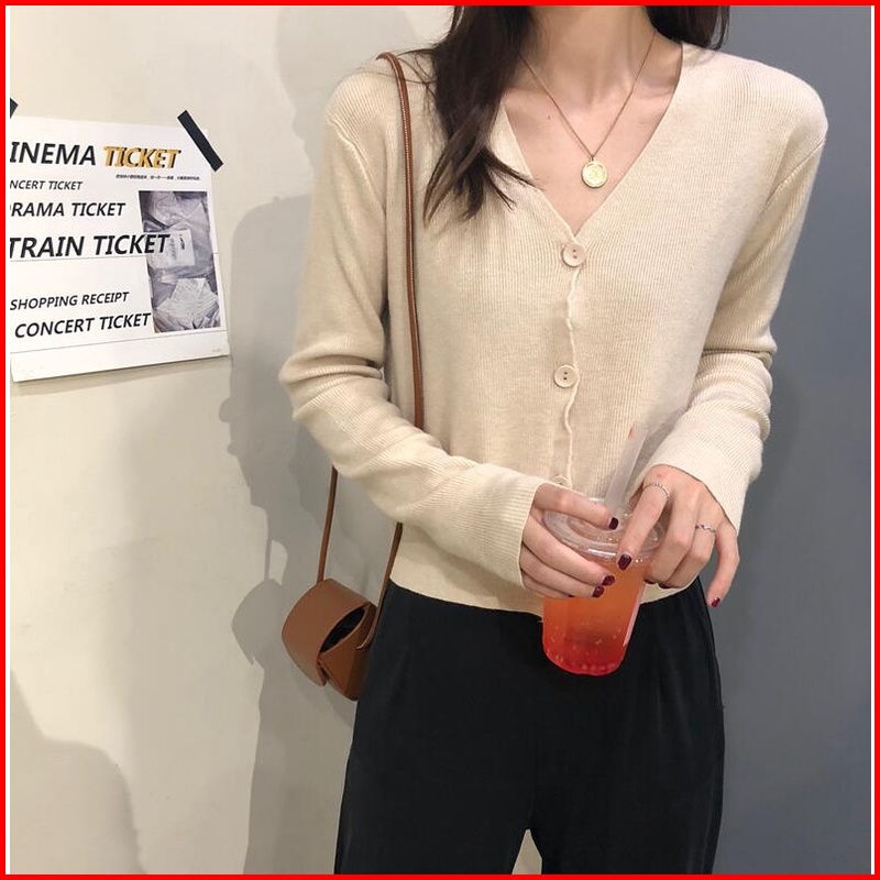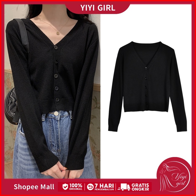 Yiyi Girl Sweater Korea Knit Wanita Outer Rajut Polos Lengang Panjang
