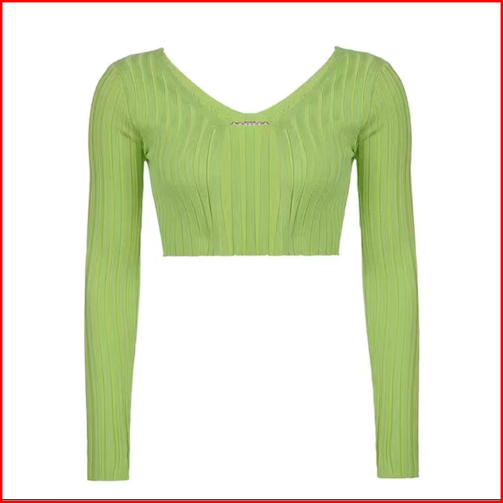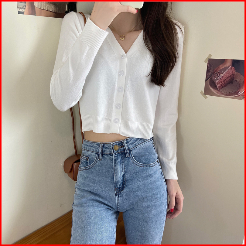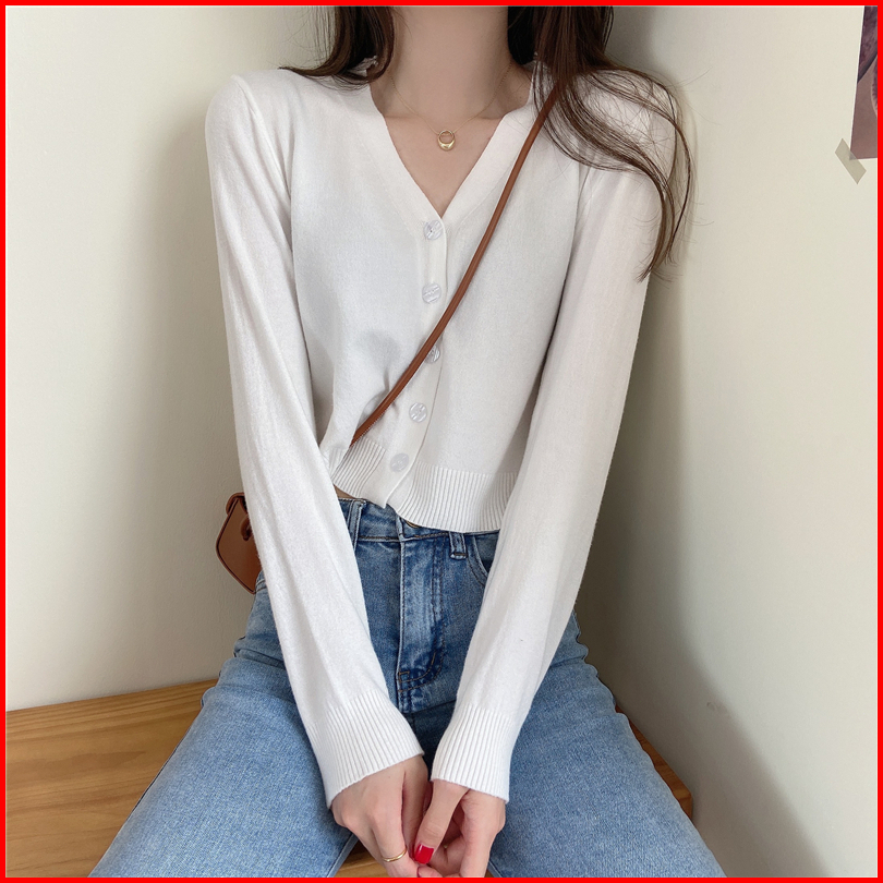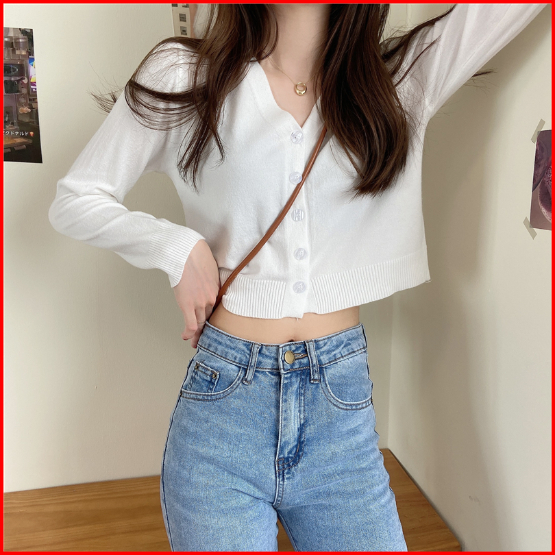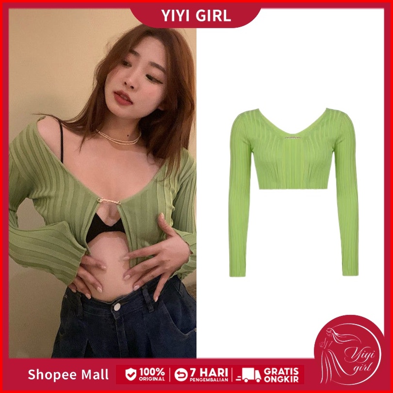 Yiyi Girl Crop Top Wanita Rajut Lengan Panjang Polos Sexy Knit Casual Cardigan