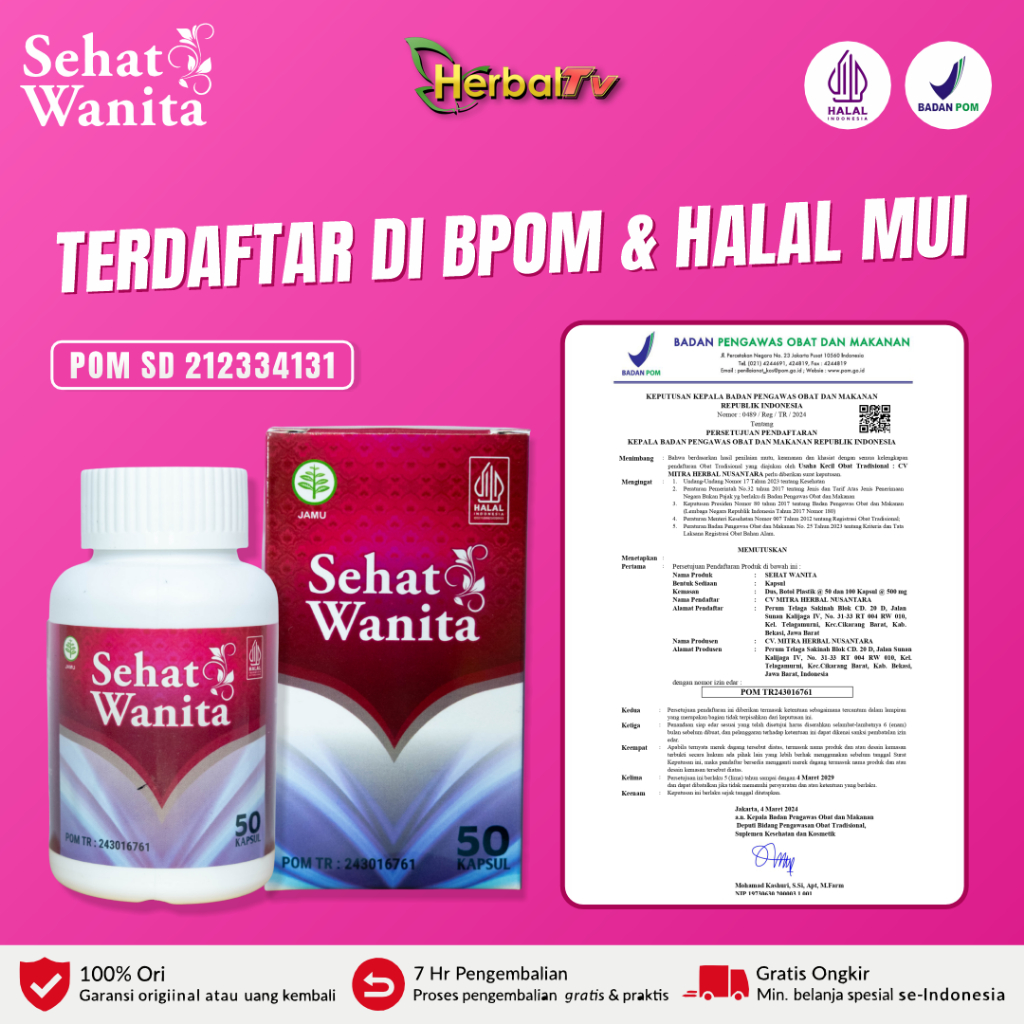 Sehat Wanita Asli Original 50 100 Kapsul Obat Haid Tidak Lancar Nyeri Keputihan Promil Kista Rahim