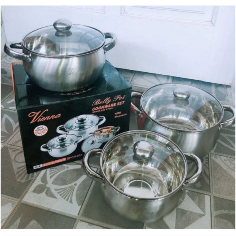 Panci Labu Set 3 pcs Stainless Steel Kualitas Premium