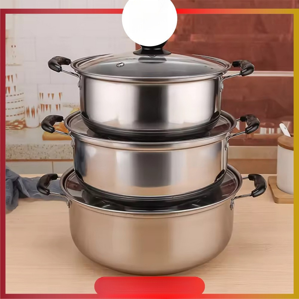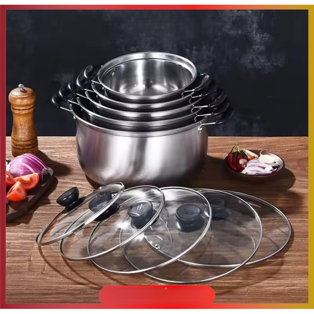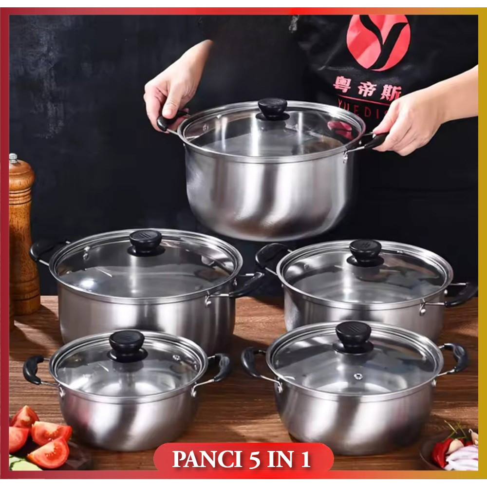 Panci Sup 5 IN 1 Stainless Steel Tutup Kaca / Set 5 pcs Panci Steam Pot Gagang Handle Kuping VANEZ
