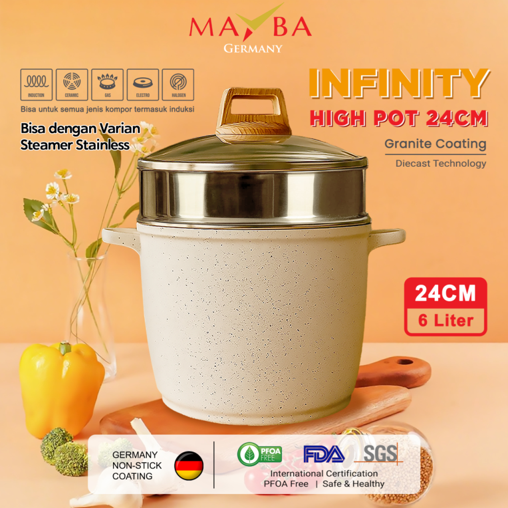 MAYBA HIGH POT panci tinggi stock pot type infinity anti lengket glowing granite diecast technology